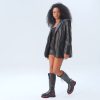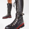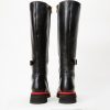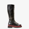 Istinye Black Leather Knee High Lace-Up Women Boot
