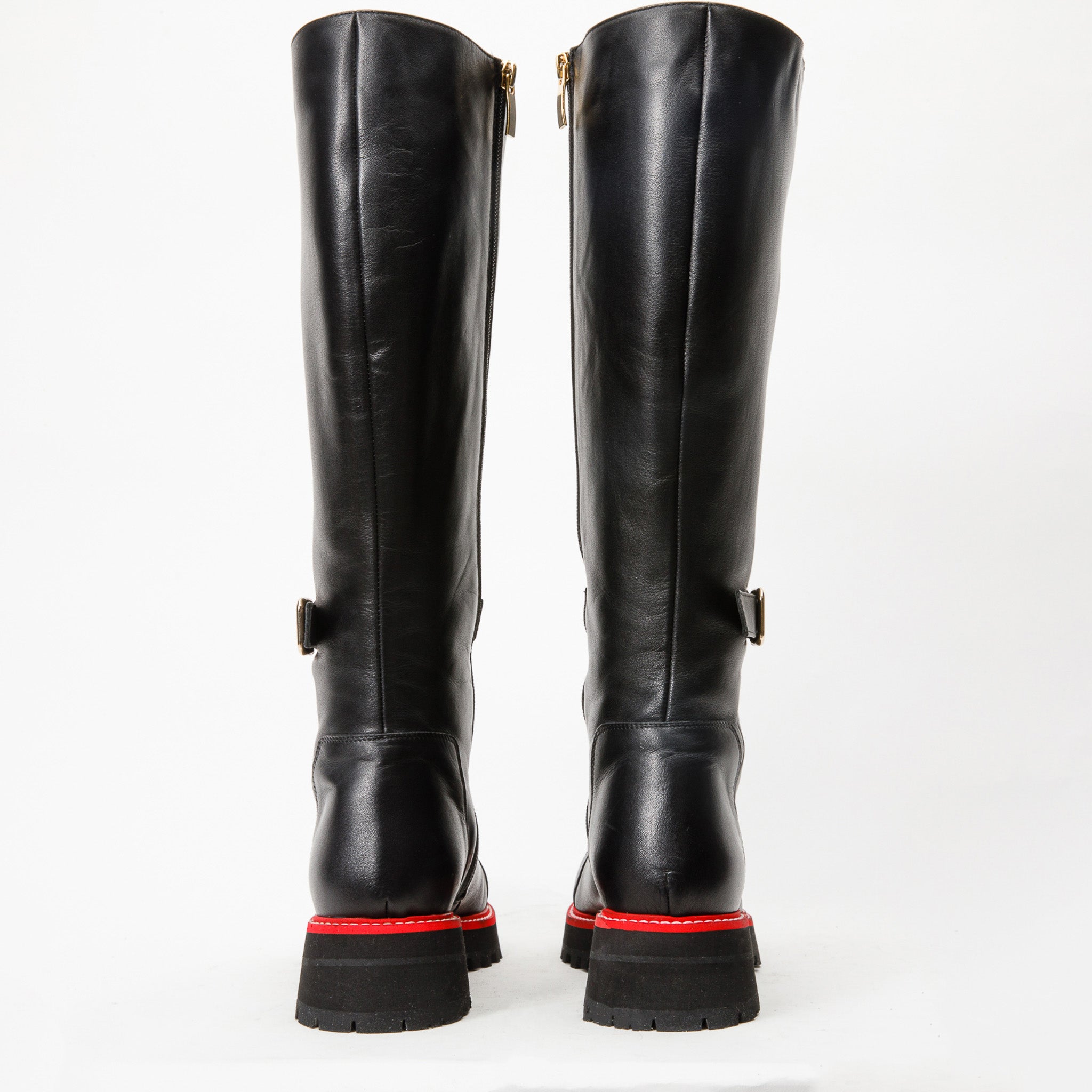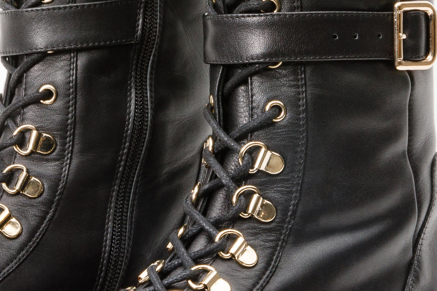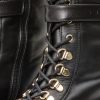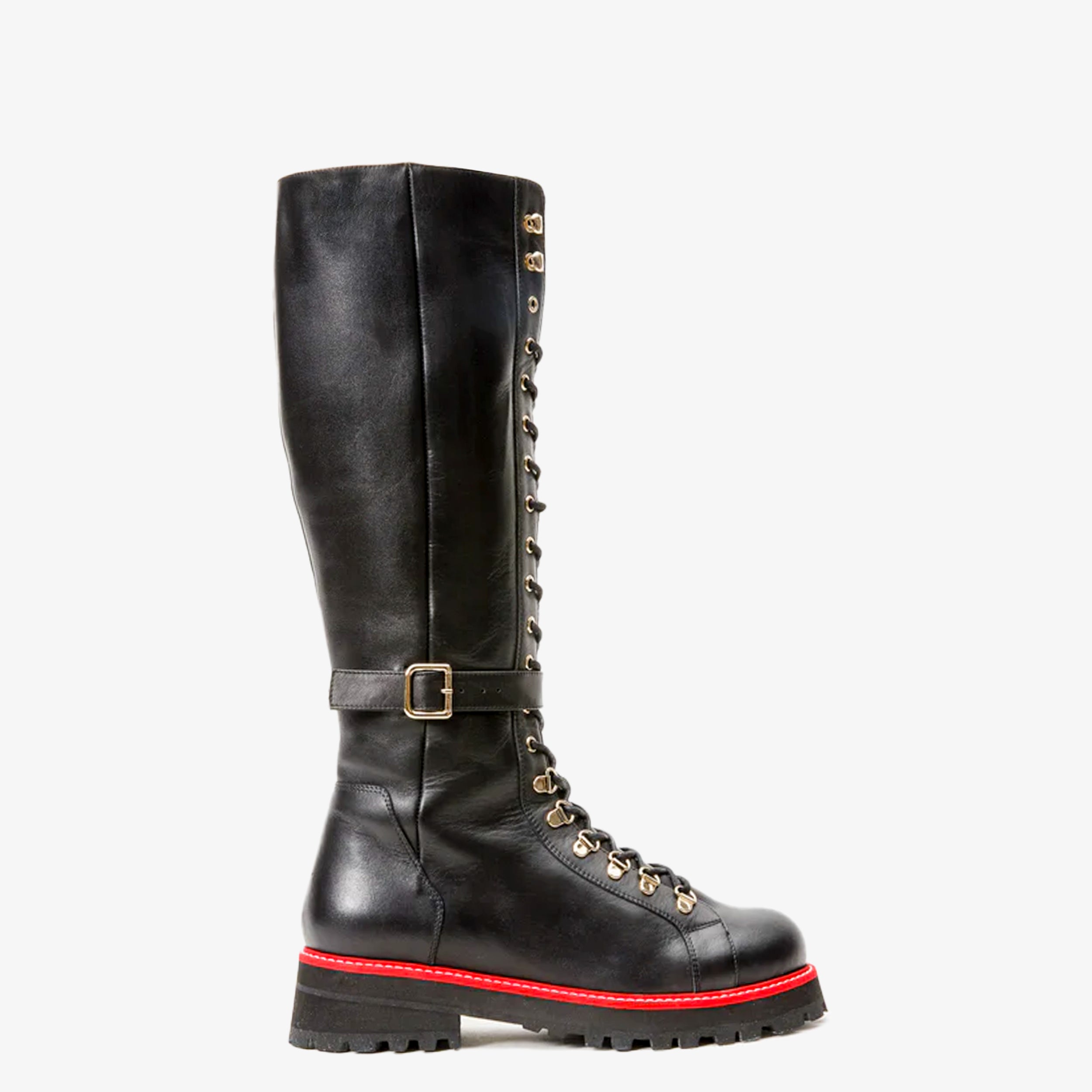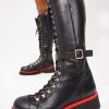 - The combination of black leather, lace-up design, and zipper detail creates a unique and fashionable knee-high boot.