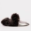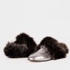 Step into Luxury with ‘The Izmir’ – The Exquisite Silver Leather Natural Fur Women’s Slipper