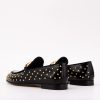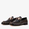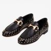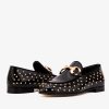 The edges of the shoe are adorned with gold spikes, adding a touch of edgy elegance to the design. At the top, a captivating gold buckle takes center stage, creating a focal point that captures attention and exudes luxury.