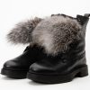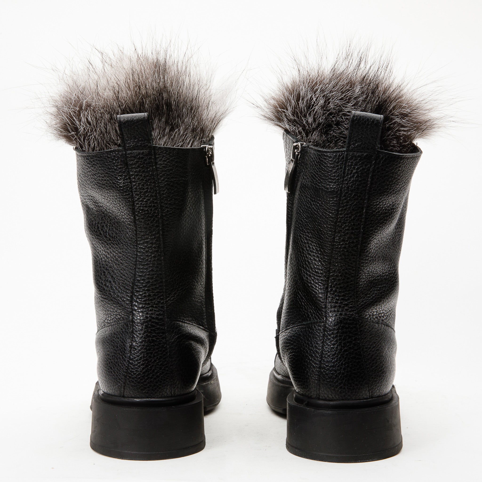 Kajapati Black Leather Natural Fur Mid Calf Women Boot