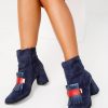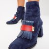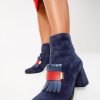 - Elevate your style with the Luksor Navy Blue Suede Leather Block Heel Boot, expertly handcrafted from 100% luxurious suede leather, embodying sophistication with every detail.