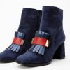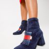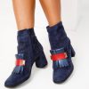 Luksor Navy Blue Suede Leather Block Heel Women Boot: Elegance in Every Step