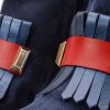 - Adorned with leather tassels on the upper part, embellished with a vibrant red leather strap delicately secured by gold jewelry on both sides, showcasing the pinnacle of artisanal artistry.