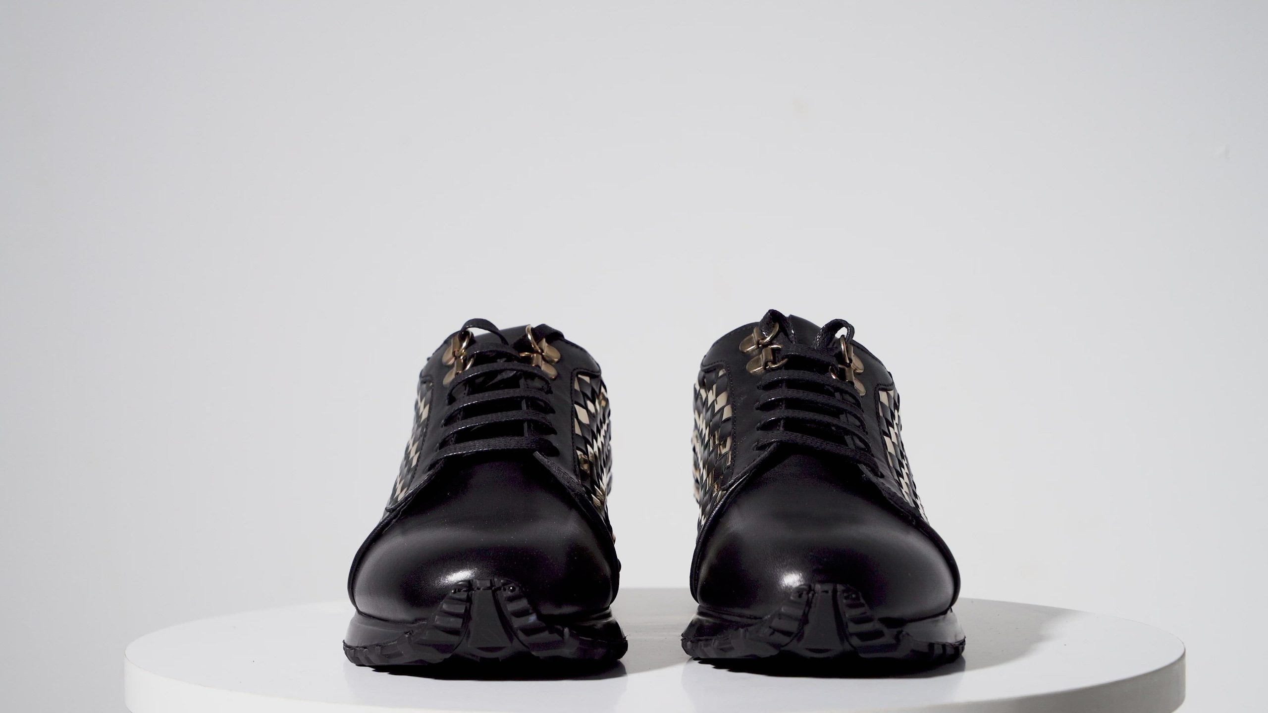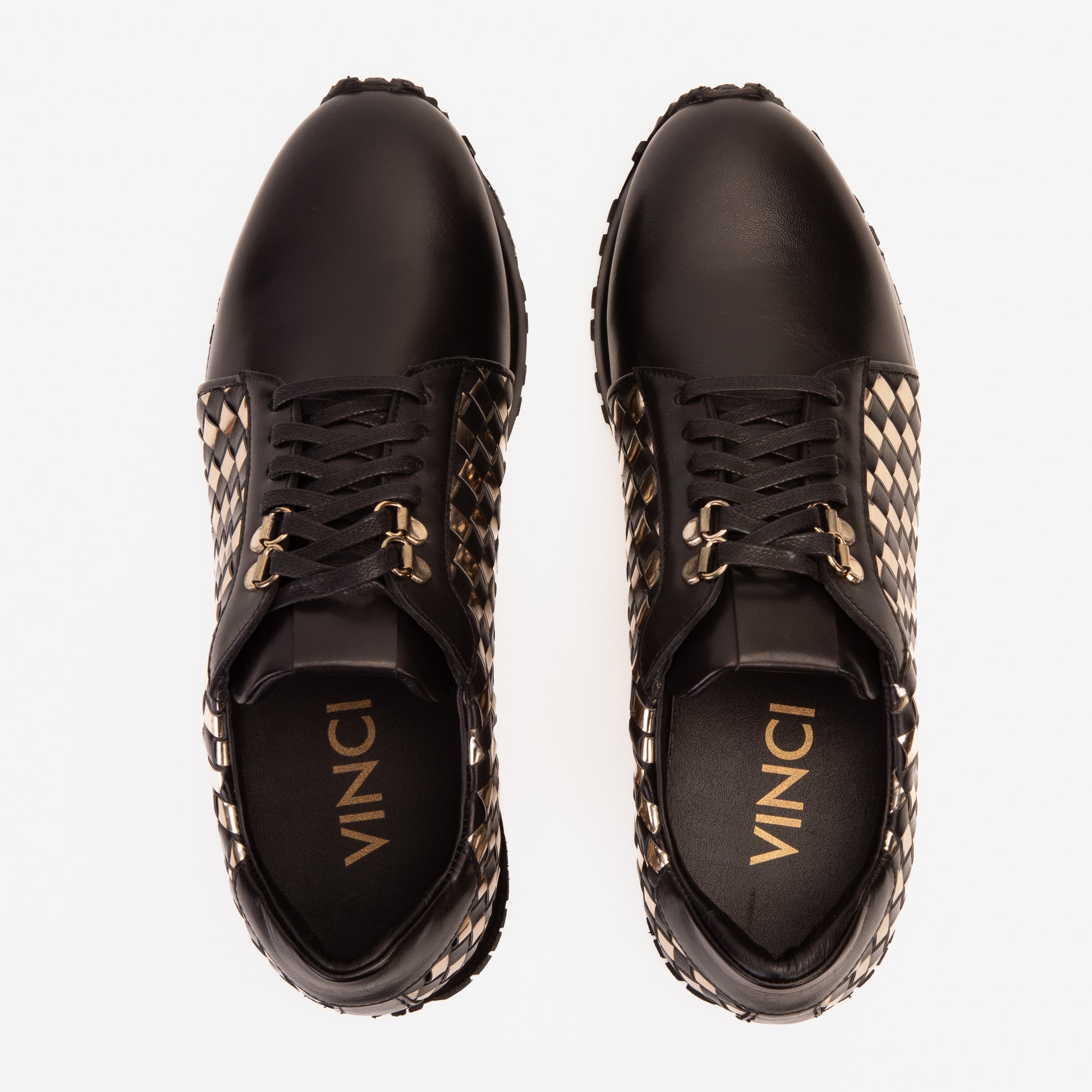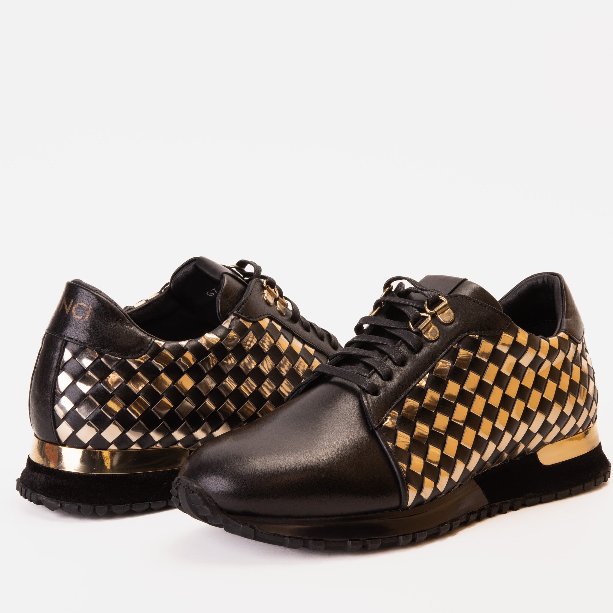 Mackenzie sneaker is a pinnacle of luxury, meticulously crafted from premium-quality genuine calf leather. The use of gold-colored leather, intricately handwoven, results in a captivating and eye-catching design. Each pair is carefully handcrafted, ensuring a unique and elegant appearance. The interior features a lining made from premium calf leather, paired with a natural orthopedic pad to guarantee an exceptional level of comfort. With a modern touch, the EVA outsole, along with gold accents on the heel, not only enhances the overall design but also adds a touch of opulence. Crafted with Vinci’s unique mold, Mackenzie sneaker prioritizes both comfort and a distinct sense of style.