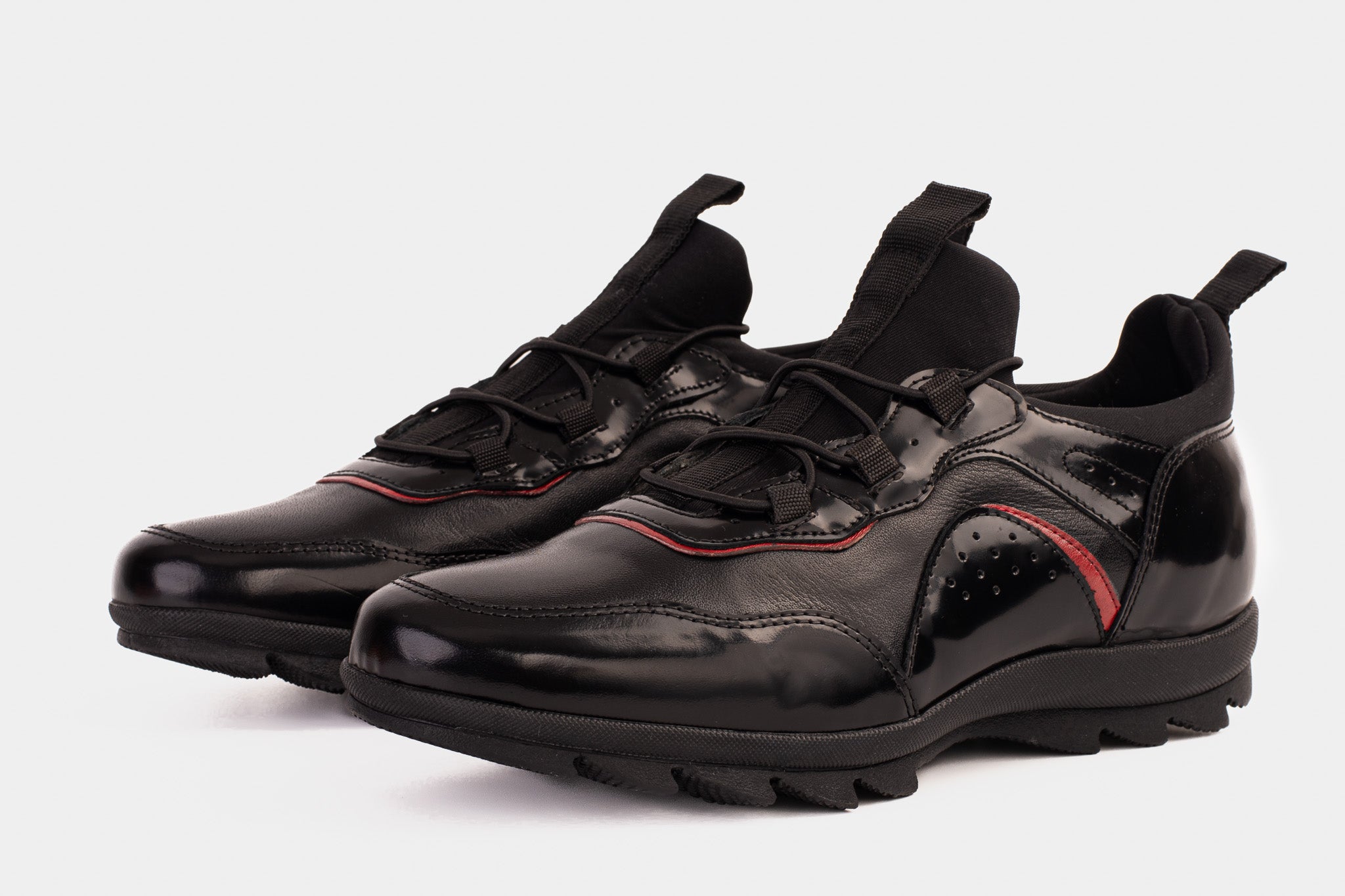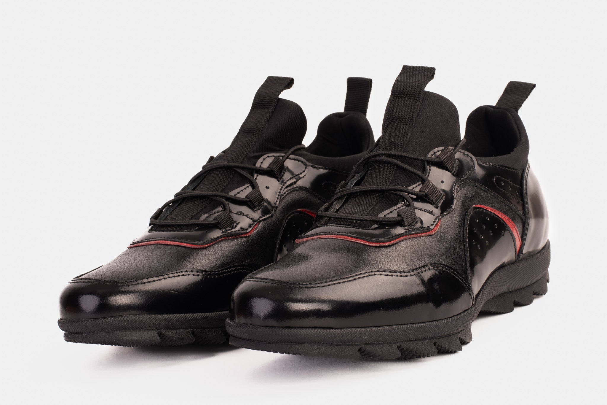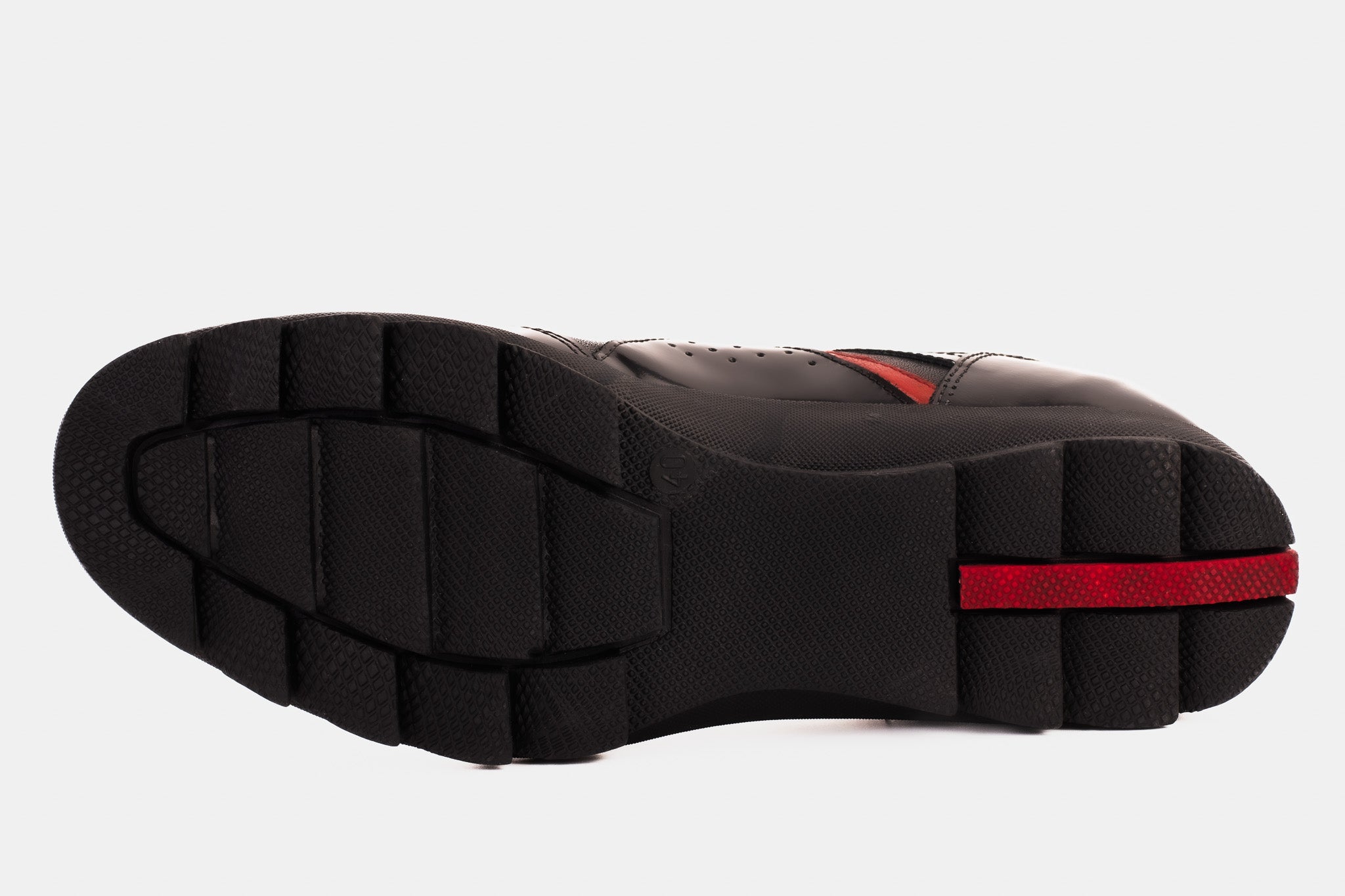 Bold Fusion: Madrid Black & Red Leather Casual Men Shoe