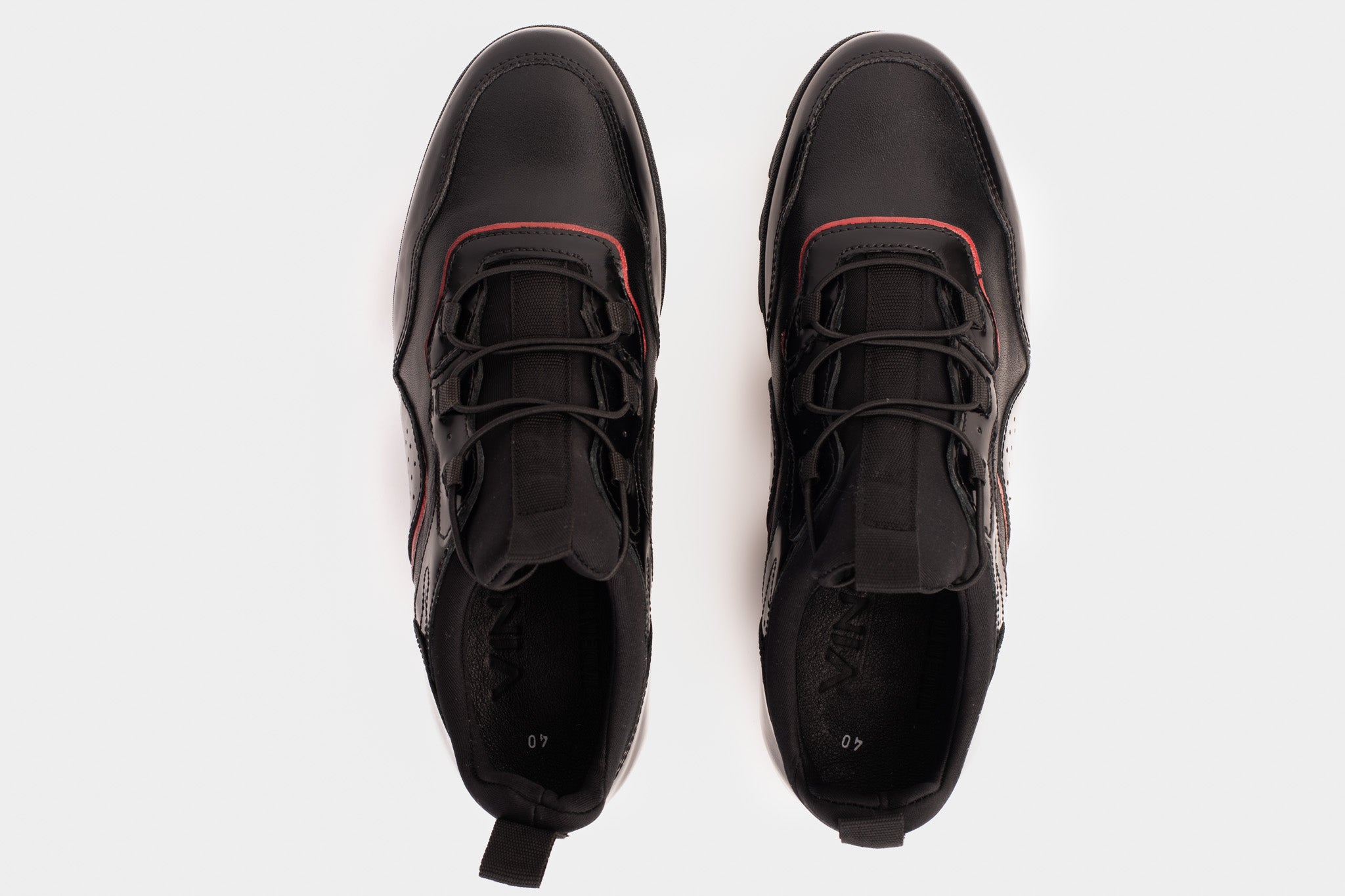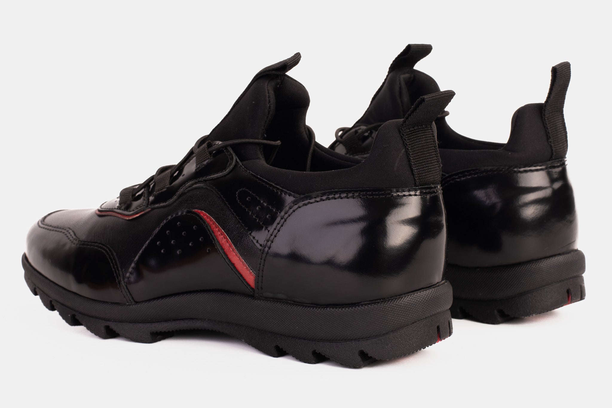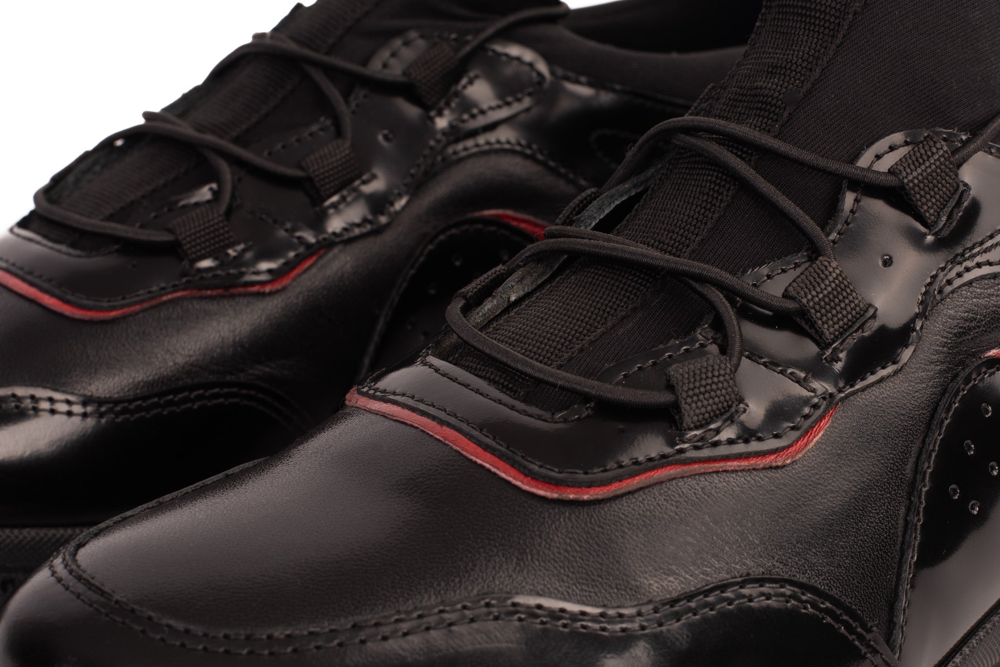 Bold Fusion: Madrid Black & Red Leather Casual Men Shoe