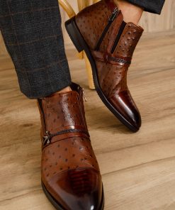 Vinci Leather Shoes The Randor Brown Crocodile Leather Side-zip Dress Ankle Men Boot | Men’s Shoes