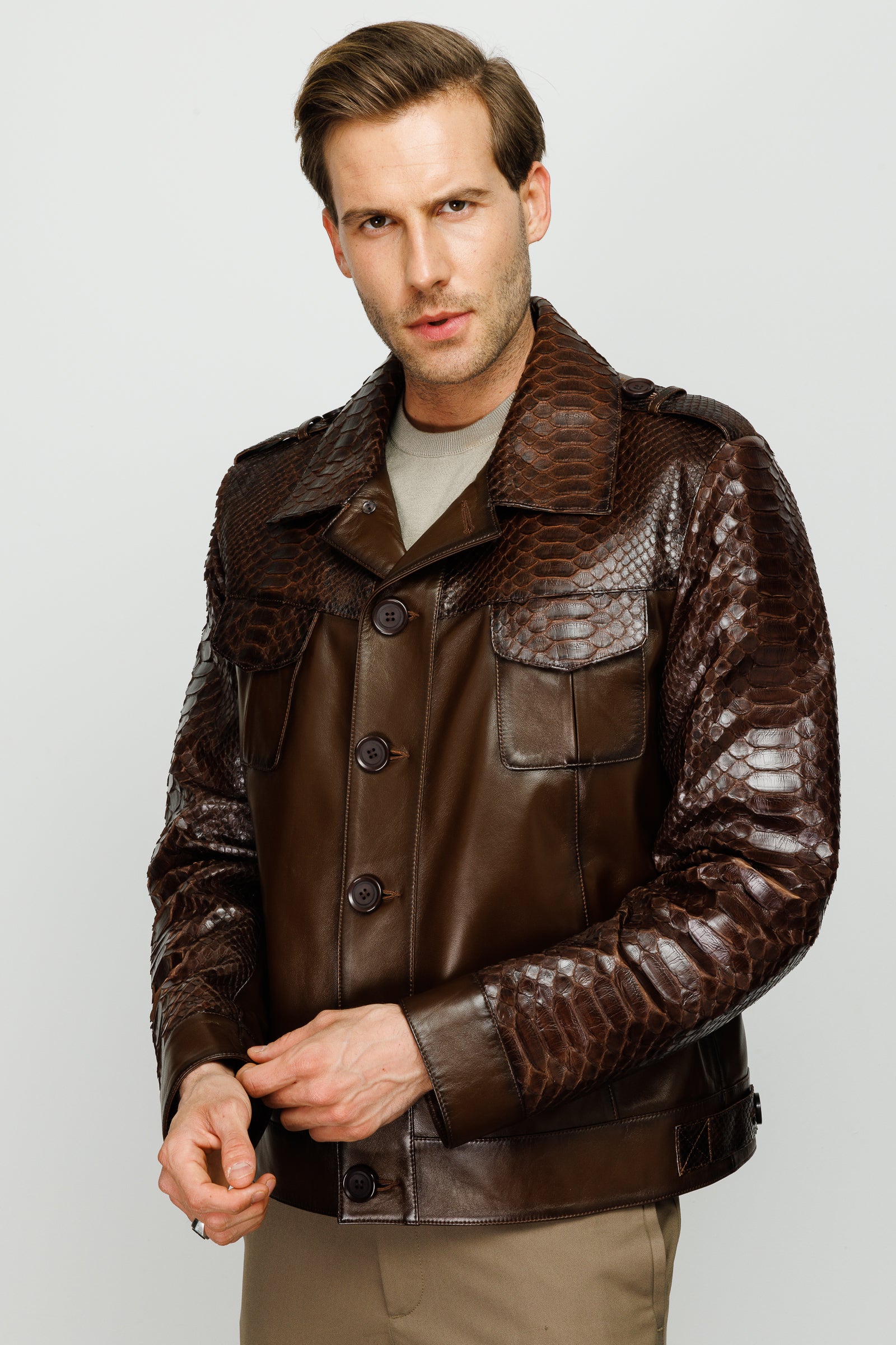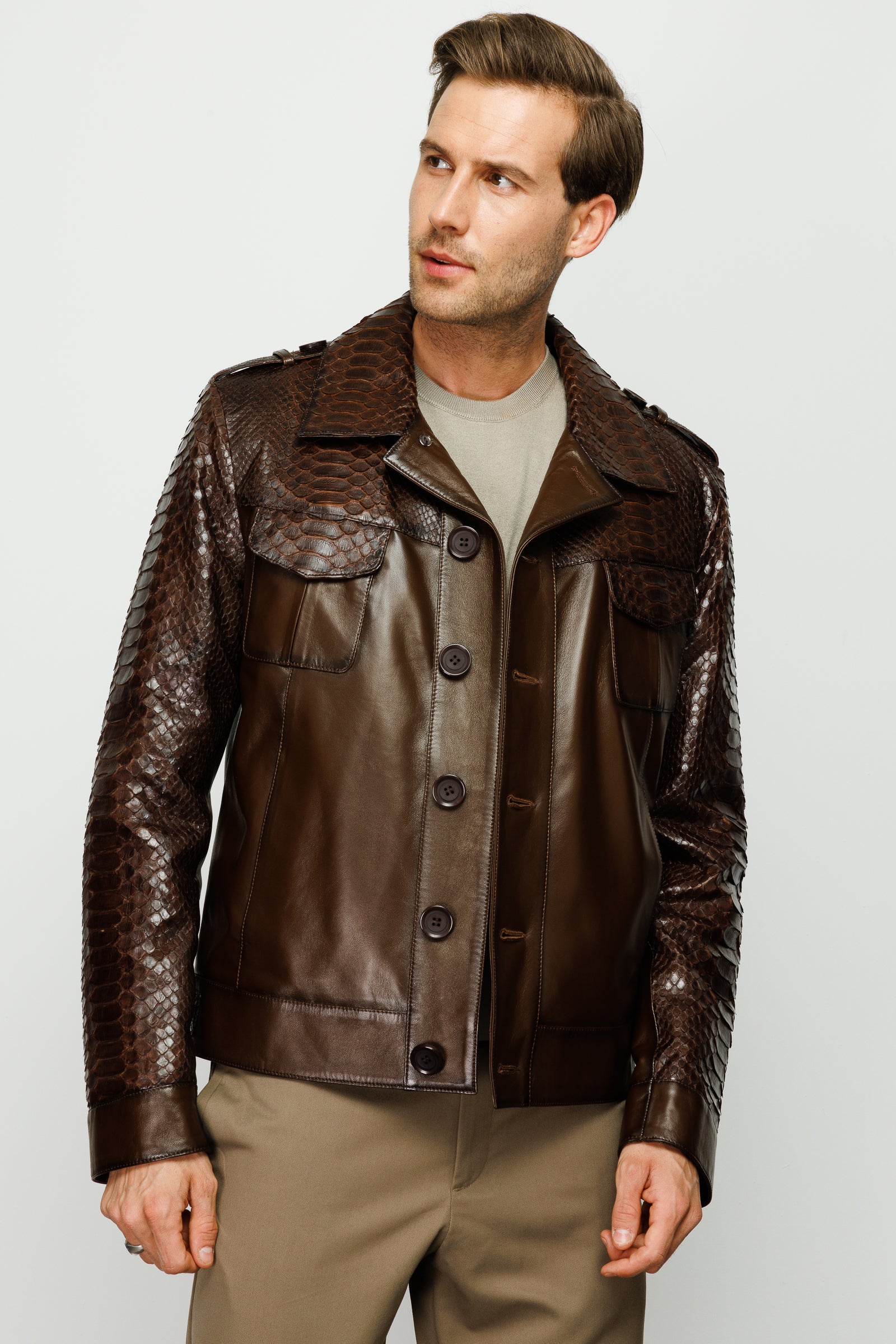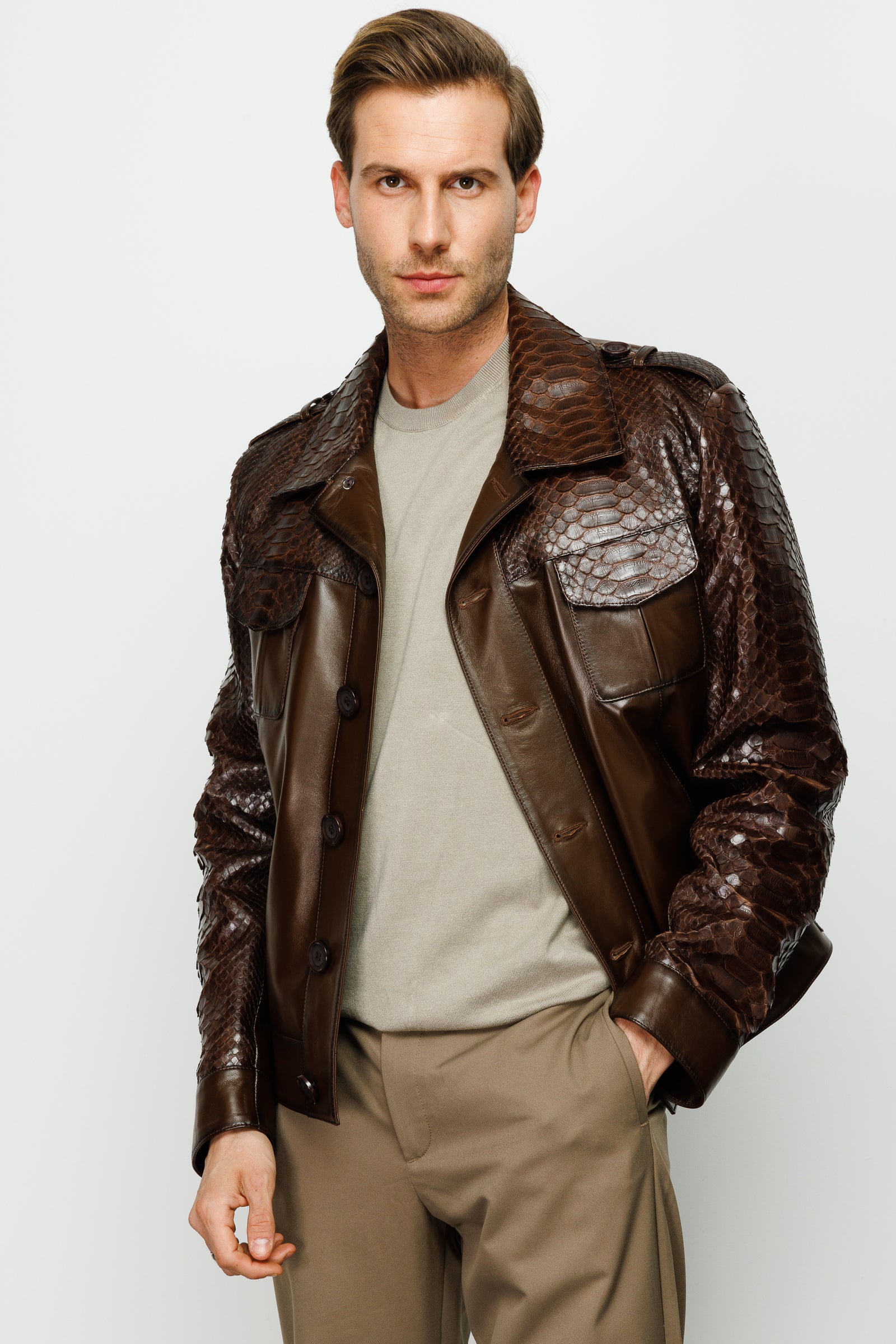 Vinci Leather Shoes The Manteca Pythn Skin Brown Leather Men Jacket | Brown | Men’s Shoes