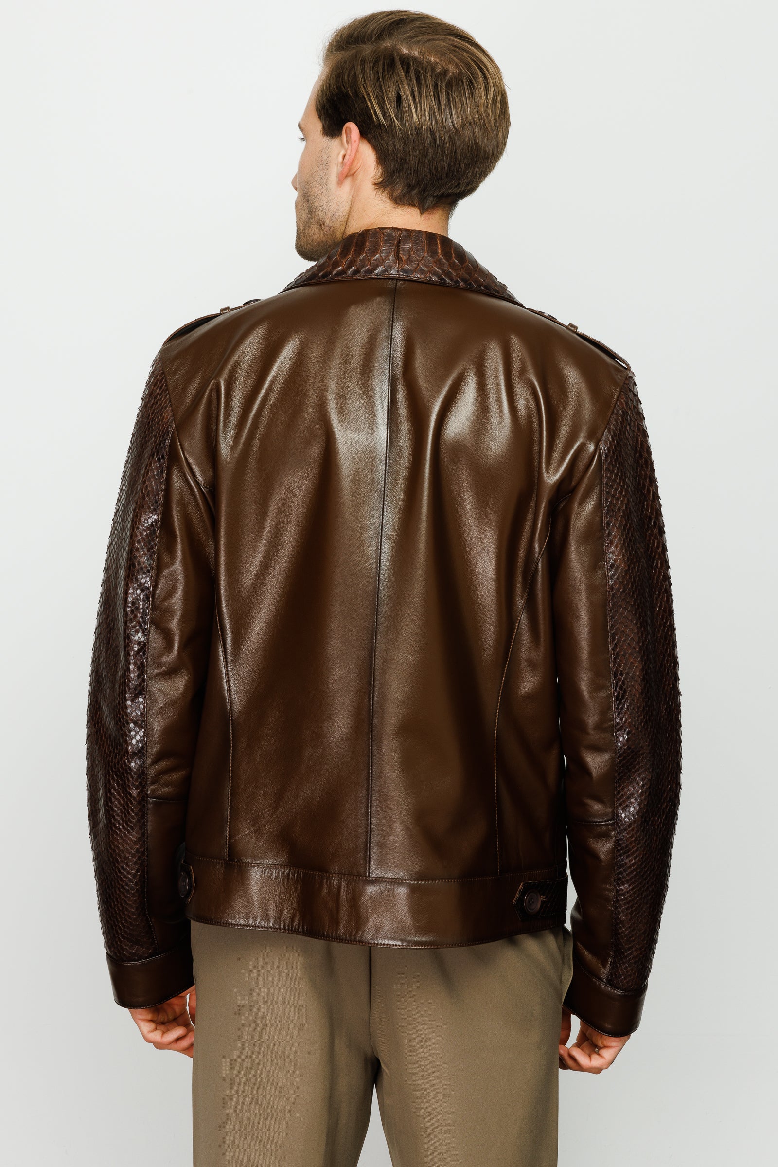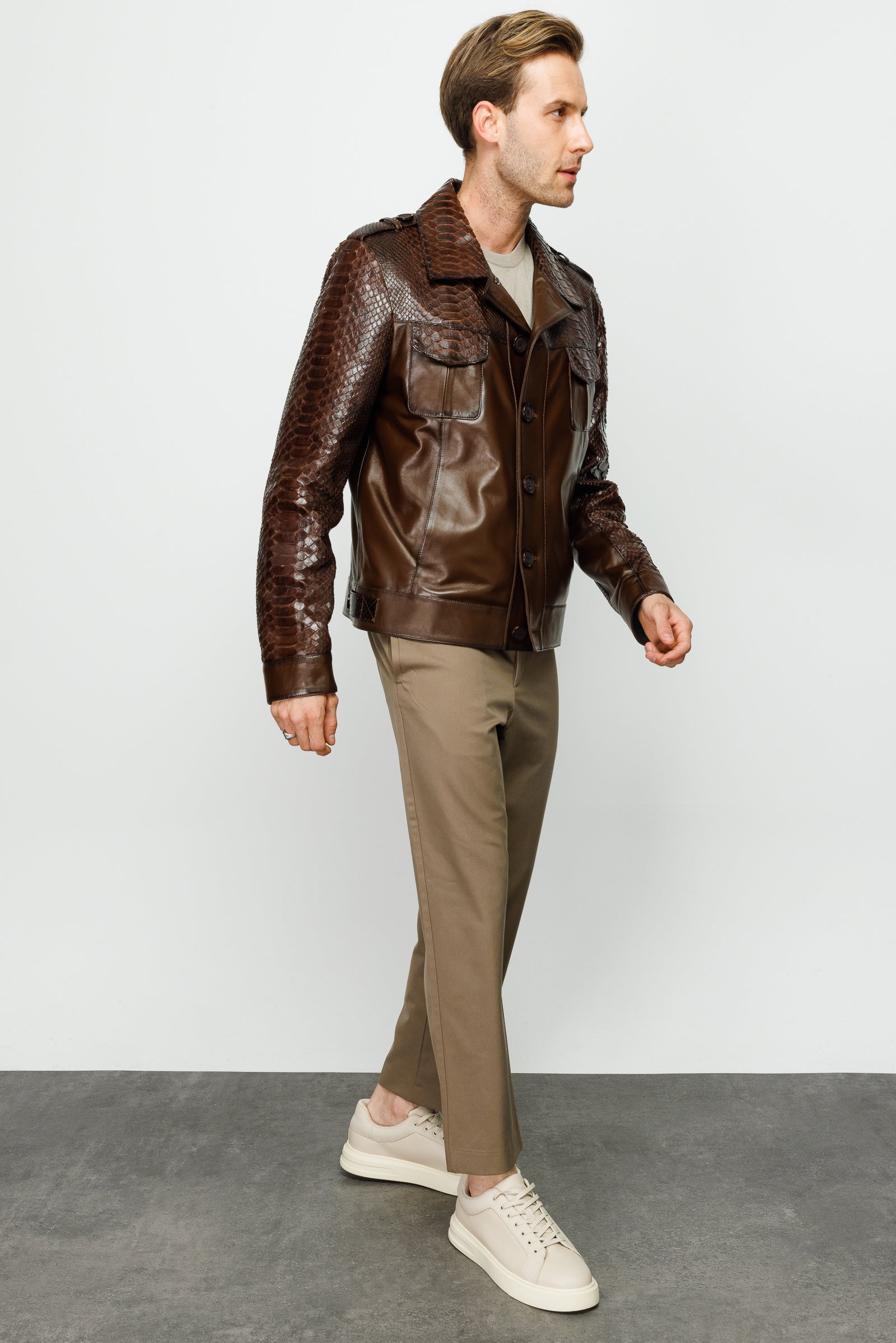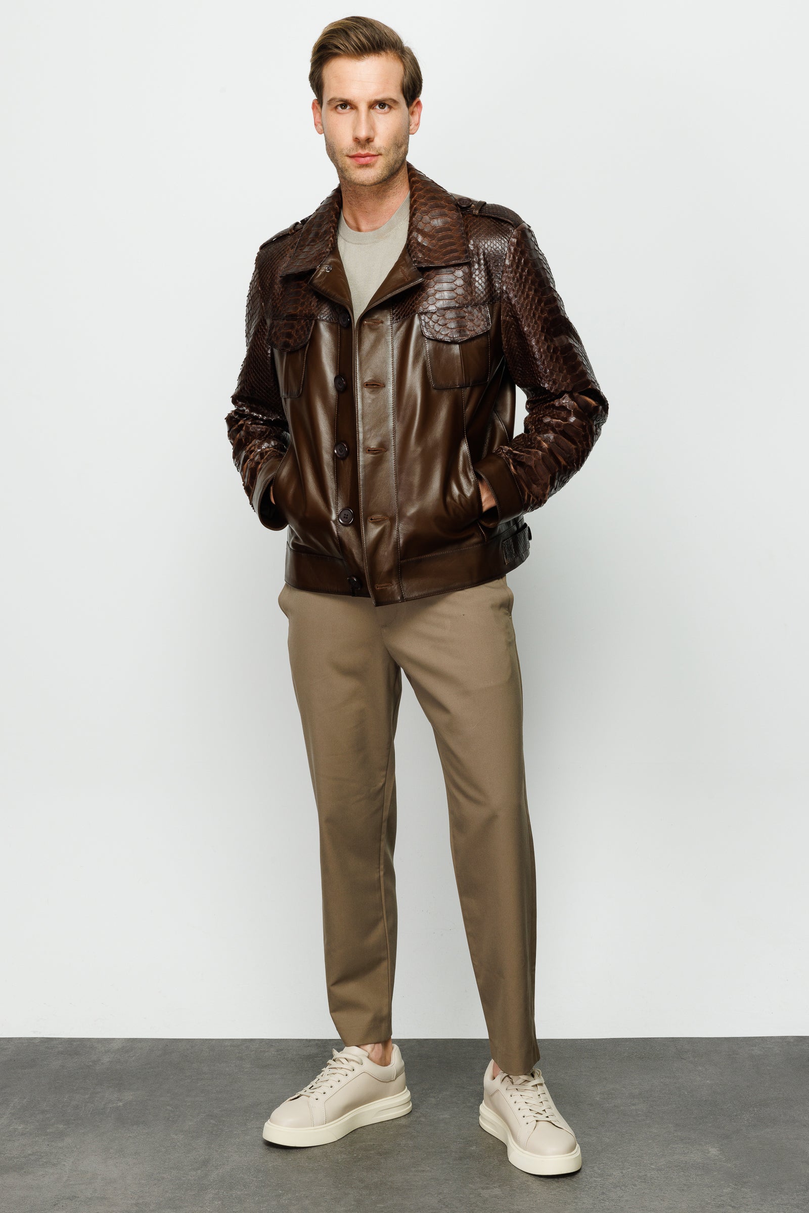 Vinci Leather Shoes The Manteca Pythn Skin Brown Leather Men Jacket | Brown | Men’s Shoes