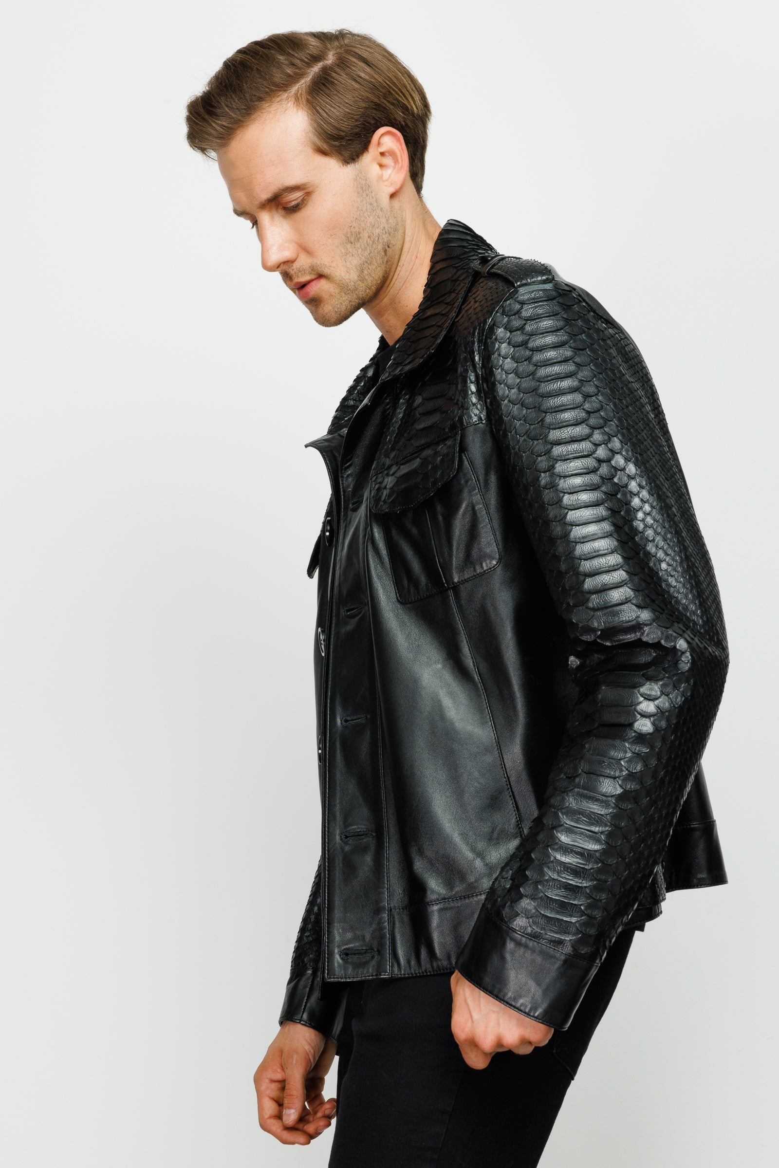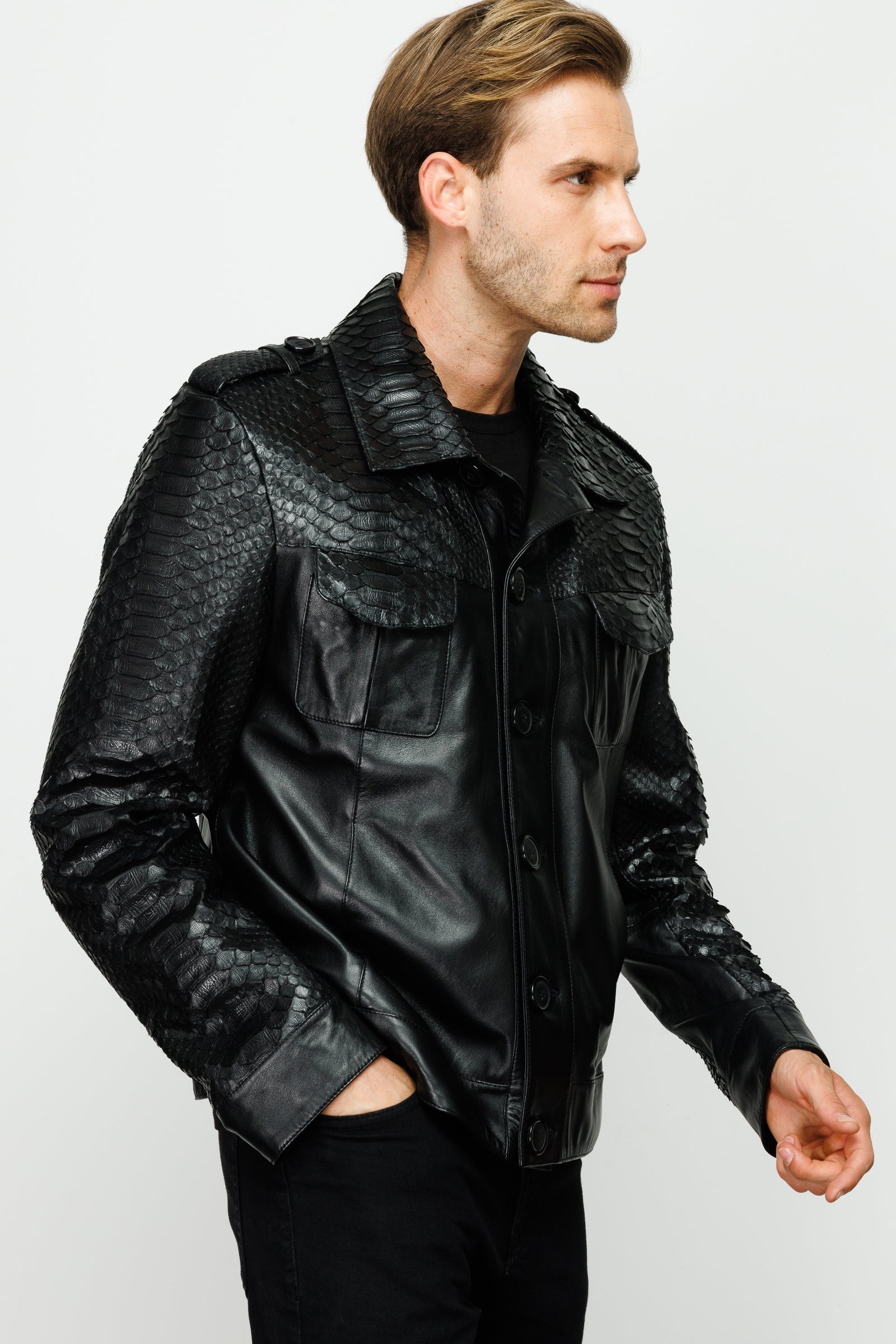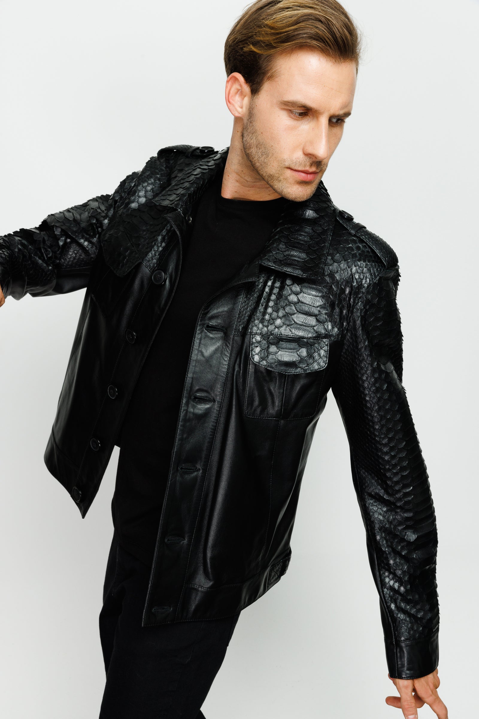 Vinci Leather Shoes The Manteca Pythn Skin Leather Black Men Jacket | Black | Men’s Shoes