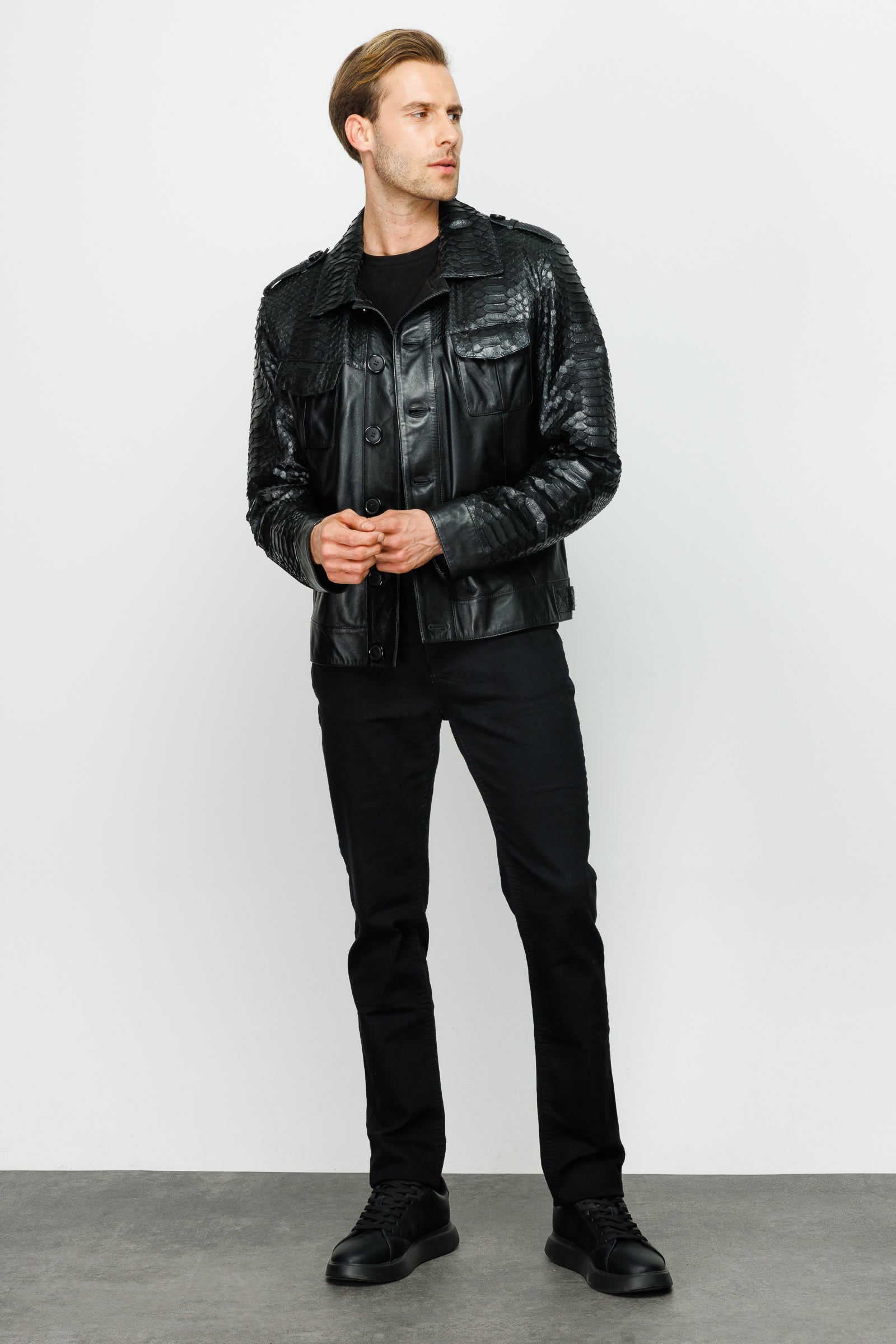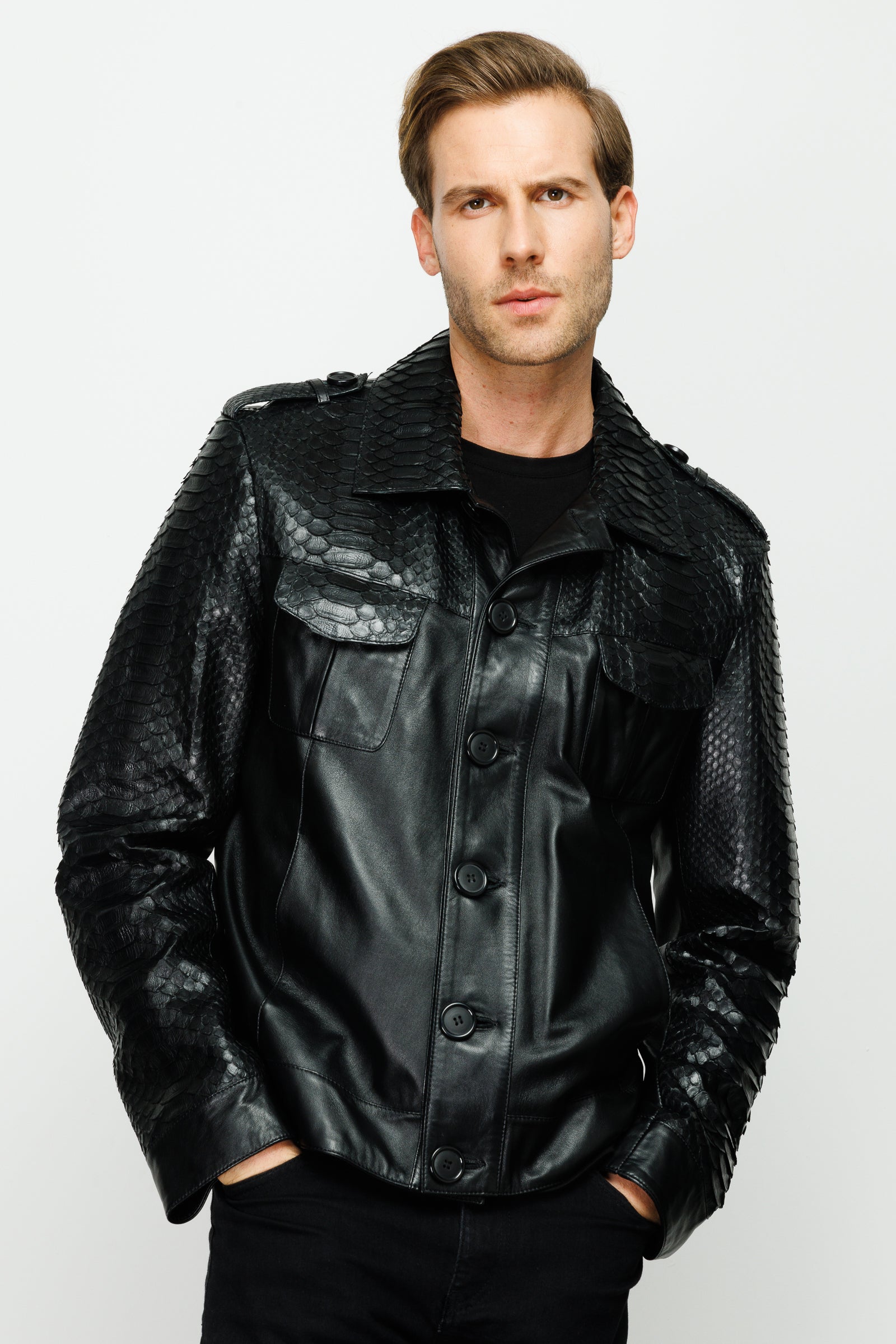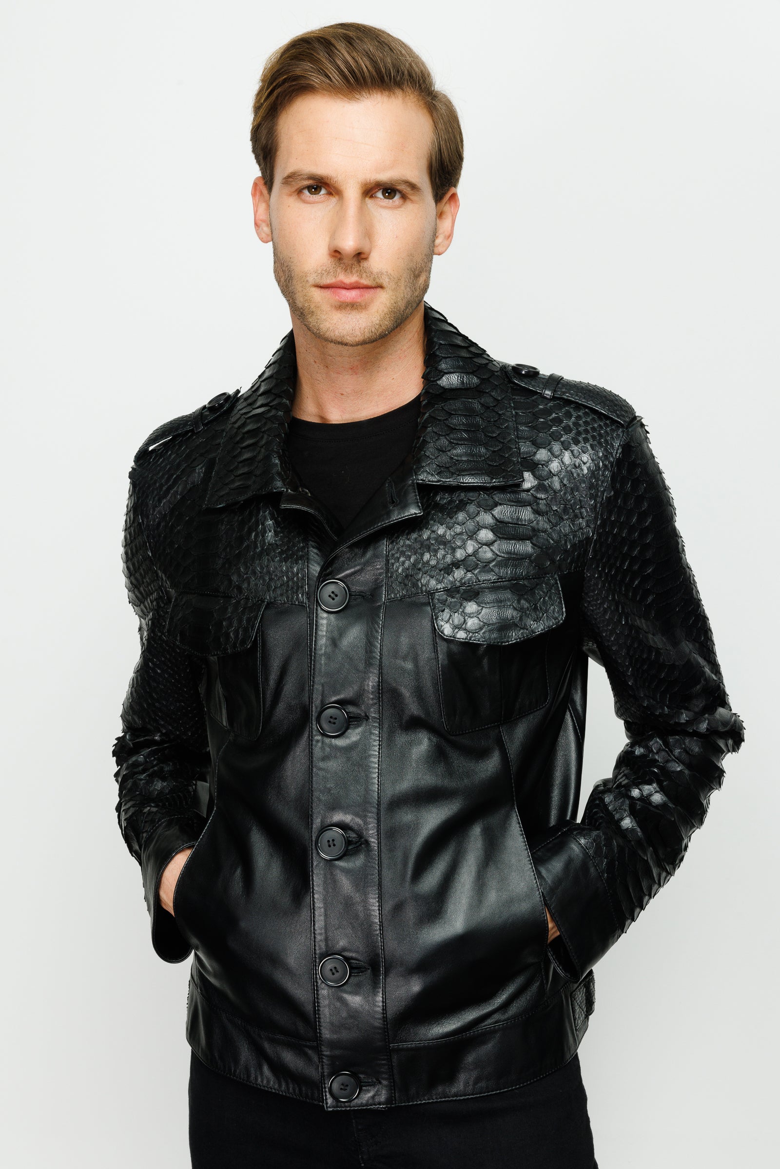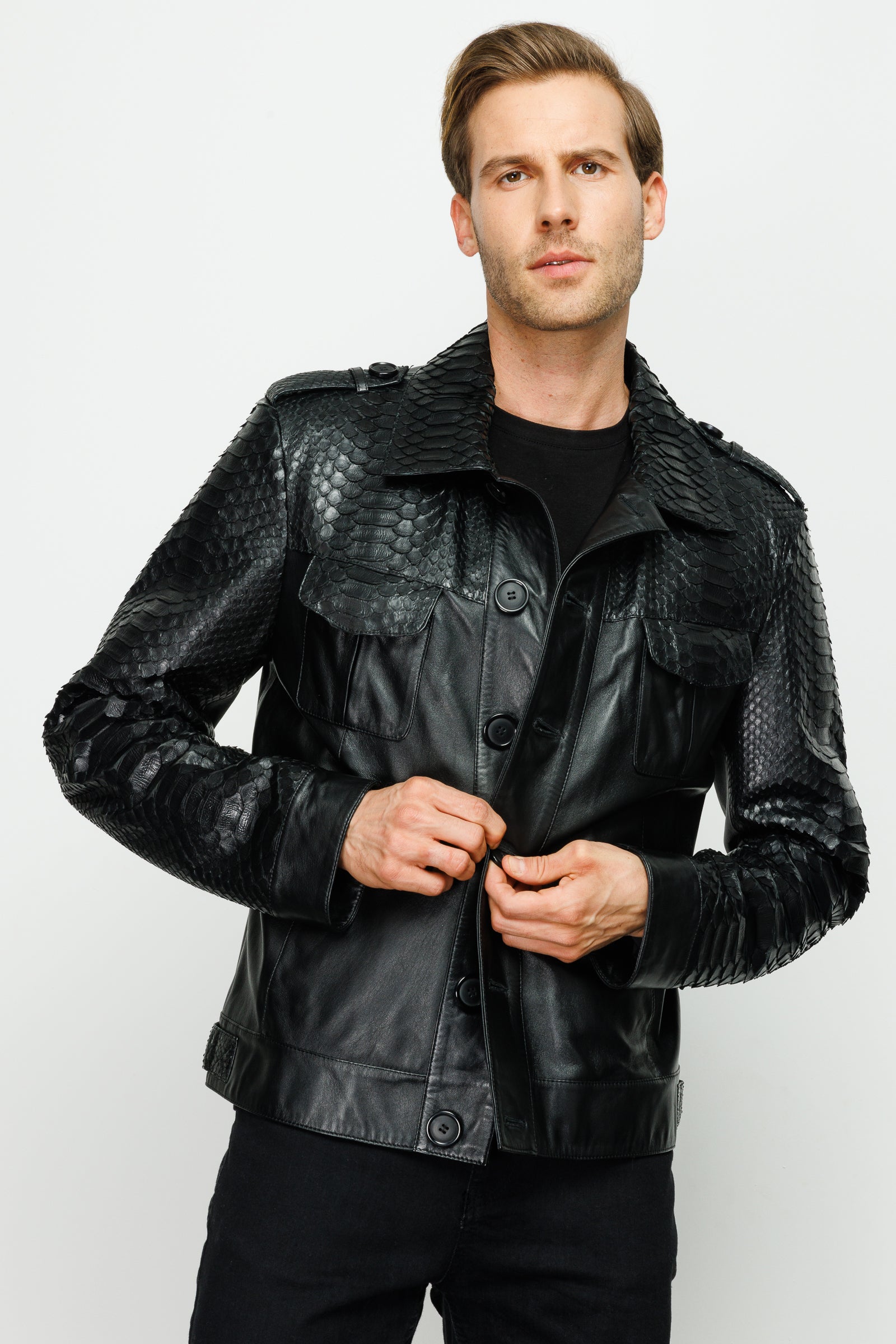 Vinci Leather Shoes The Manteca Pythn Skin Leather Black Men Jacket | Black | Men’s Shoes