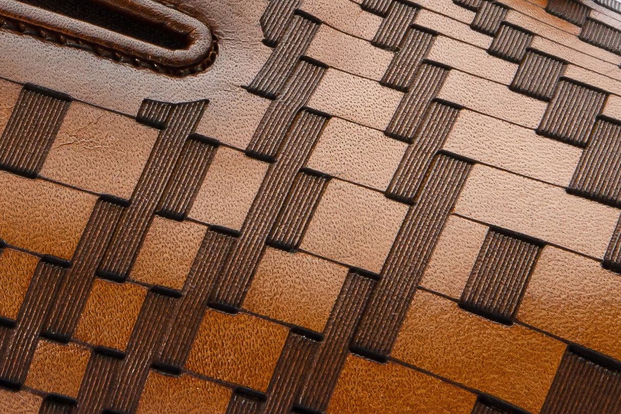 Laser-Engraved Pattern: The leather is intricately patterned with a laser-engraved design, creating a distinctive and eye-catching element on the loafer.