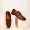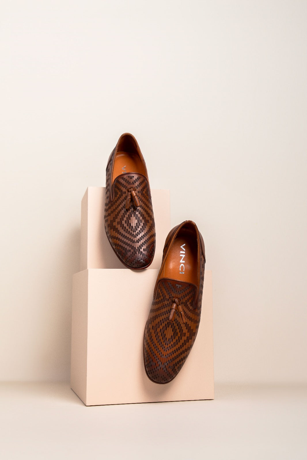 Introducing the Meram Brown Leather Tassel Slip-On Loafer Shoe, a symbol of timeless charm and refined style in rich brown. Crafted entirely from 100% leather, with a leather sole, this slip-on loafer showcases a laser-engraved pattern on the leather, adding a touch of glamour and uniqueness. Meticulously crafted from 100% genuine calf leather, this shoe is designed to stand out.