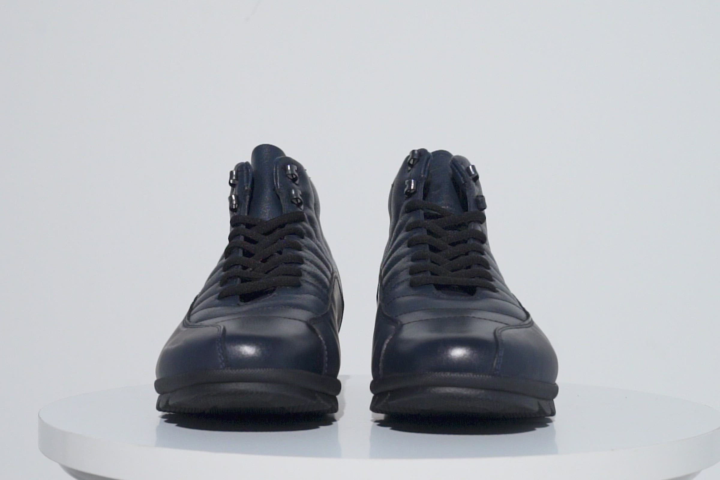 Stride in Style: Merter Navy Blue Leather Casual Lace-Up Men Boot