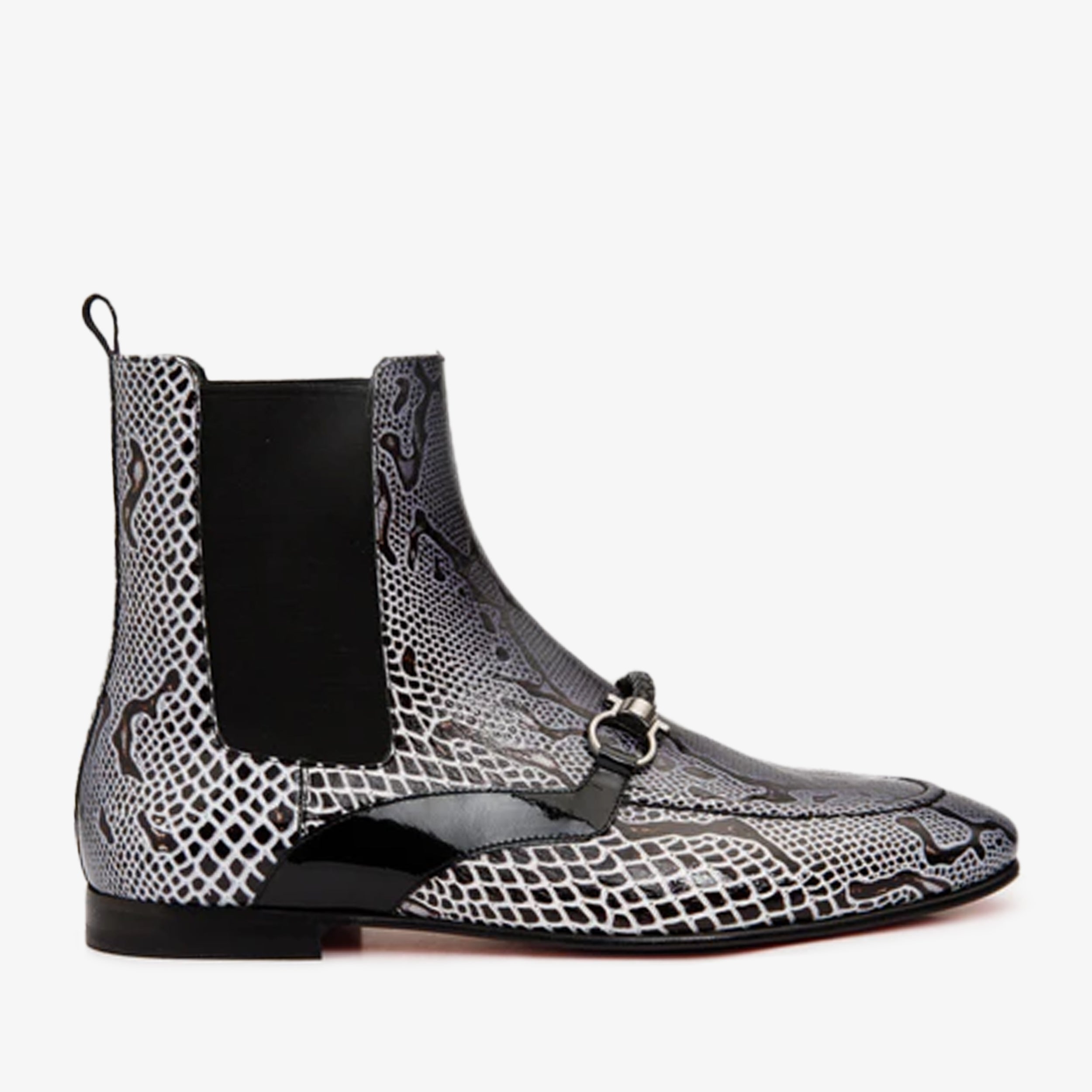 Striking Contemporary Print: Adorned with a striking contemporary print, these Chelsea boots seamlessly blend modern edge with classic style, making a bold fashion statement.