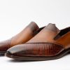 Mississippi Brown Leather Men Loafer – Refined Sophistication with Crocodle-Inspired Detailing