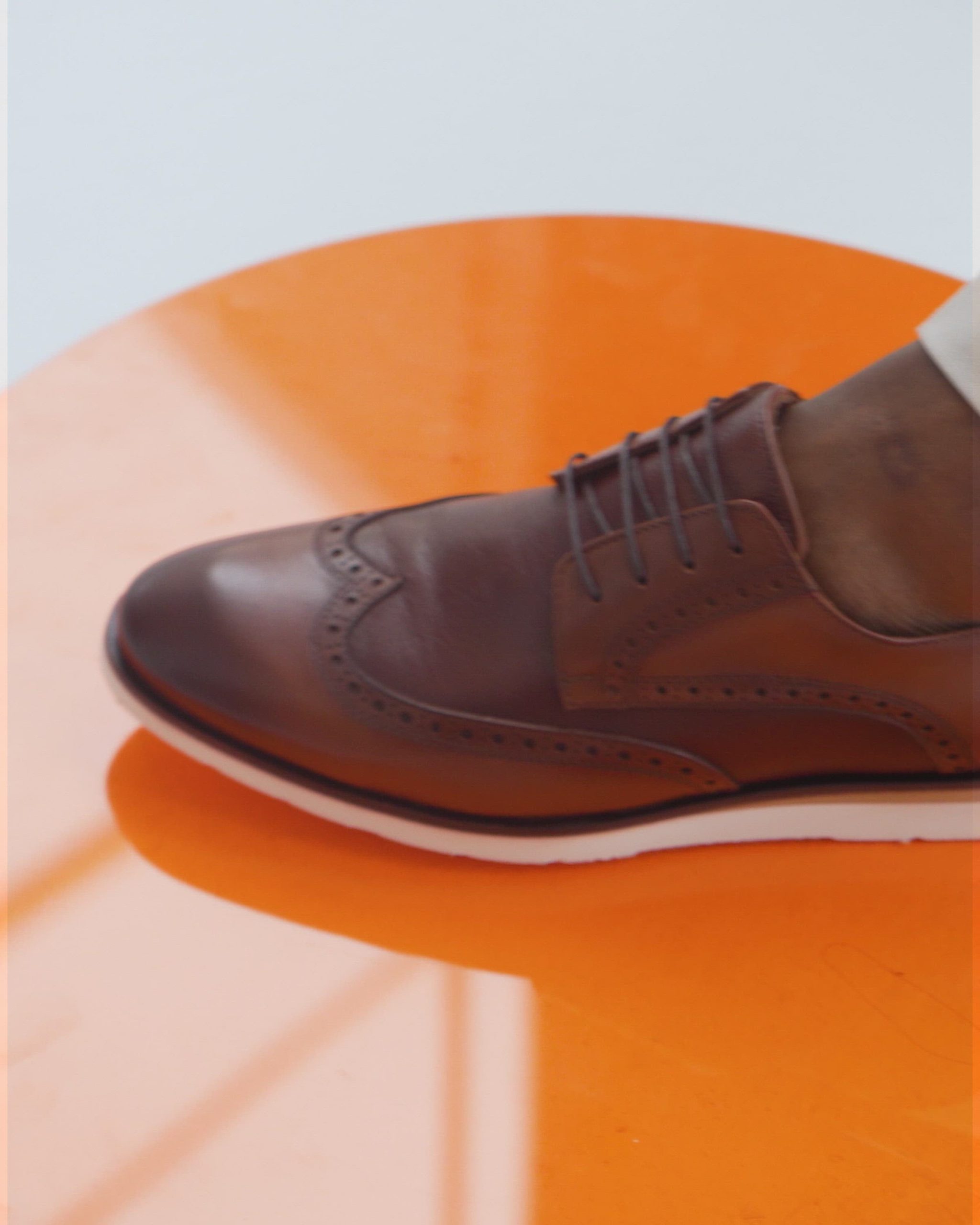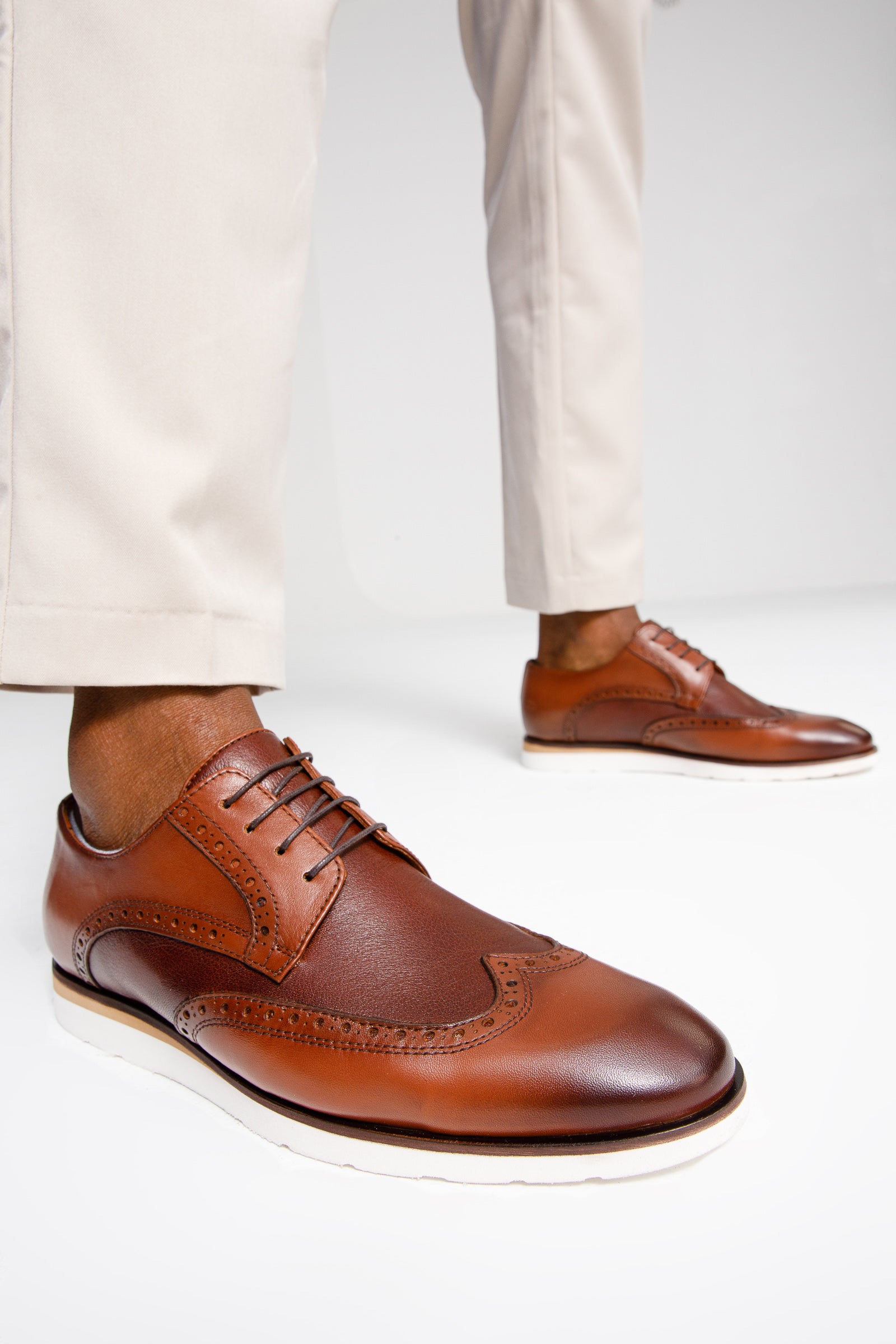 Elevate your style with the Molise Tan Wingtip Semi Brogue Derby Shoe and make a statement with sophistication and unmatched comfort.
