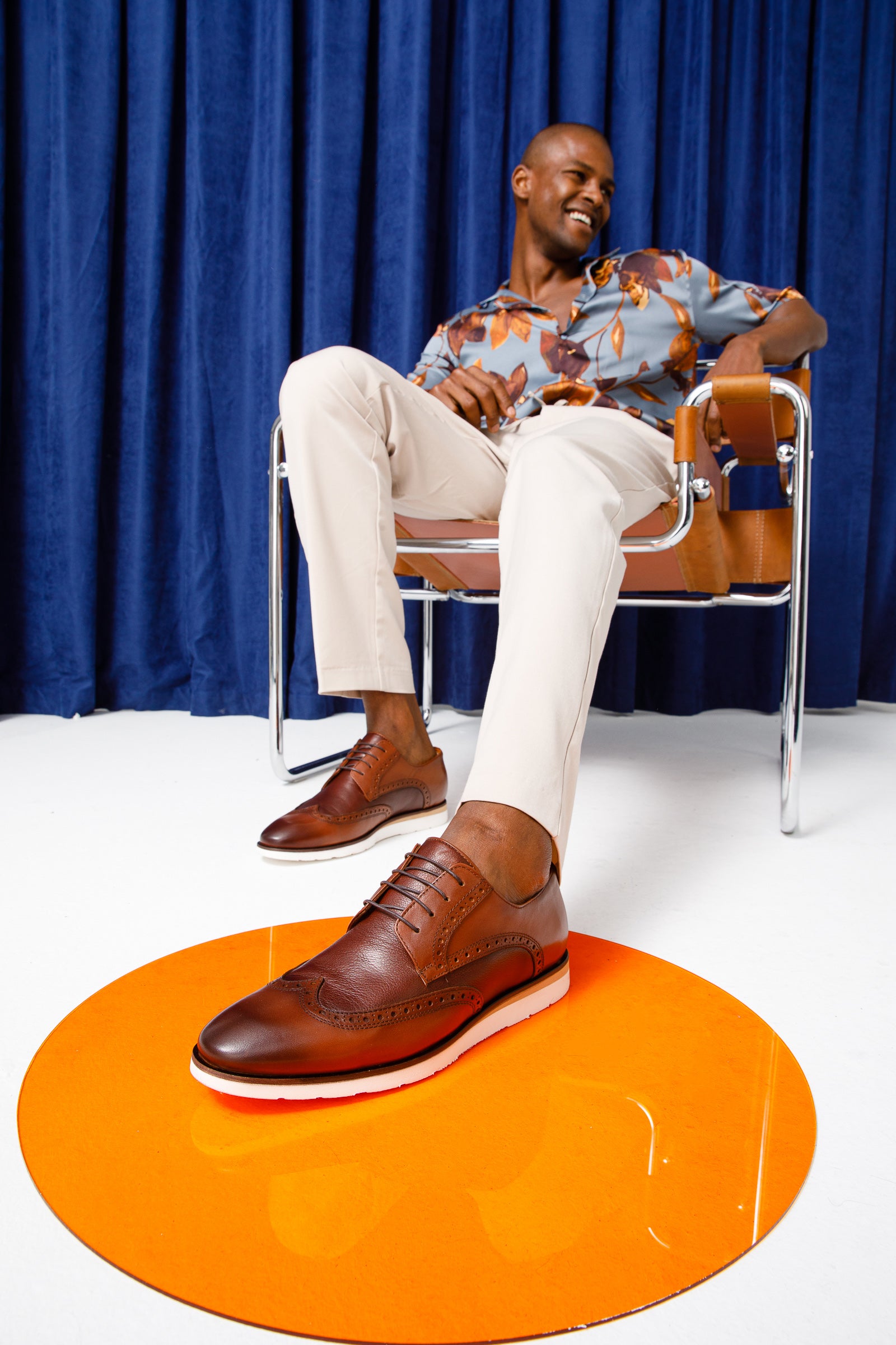 Elevate Your Style: Molise Tan Wingtip Semi Brogue Derby Shoe