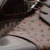 - The main body showcases an exquisite ostrch print, adding depth and richness to the shoe’s appearance.