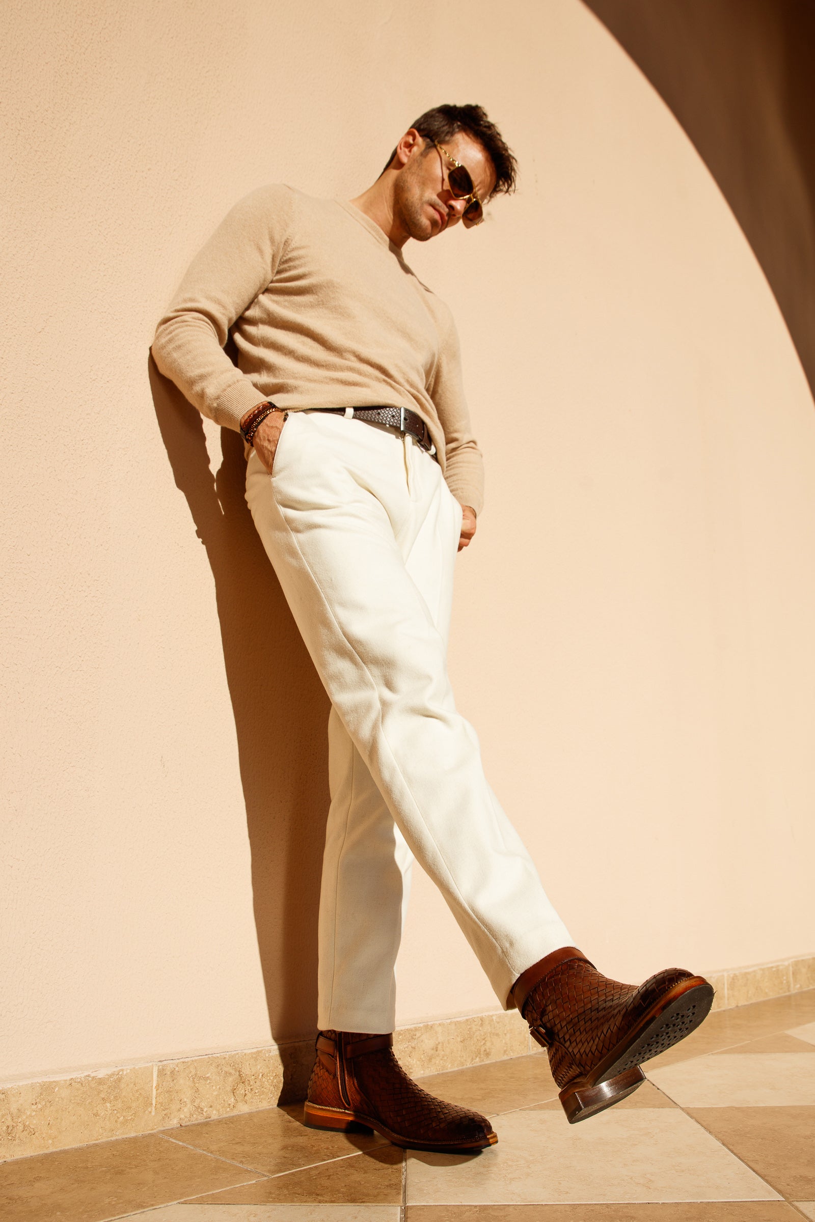 Enrich your footwear collection with the Morral Tan Handwoven Leather Cross Strap Buckle Zip-Up Men Boot, a masterpiece meticulously crafted from 100% premium calf leather using the artistry of handweaving and skilled craftsmanship.
