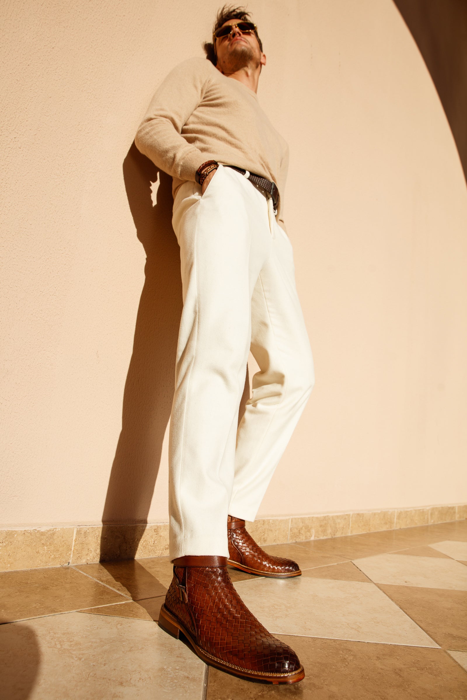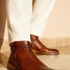 Exquisite Handwoven Leather: Immerse yourself in the unparalleled beauty of handwoven leather, showcasing intricate detailing and a unique texture that sets this boot apart.