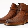 Morral Tan Handwoven Leather Cross Strap Buckle Zip-Up Men Boot: Unrivaled Craftsmanship and Timeless Style