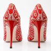 The heel, adorned in vibrant red patent leather, adds a touch of opulence, while the regal crimson hue envelops the entire shoe. This exquisite pair is more than just footwear; it’s a statement piece that captures attention and sparks conversation.