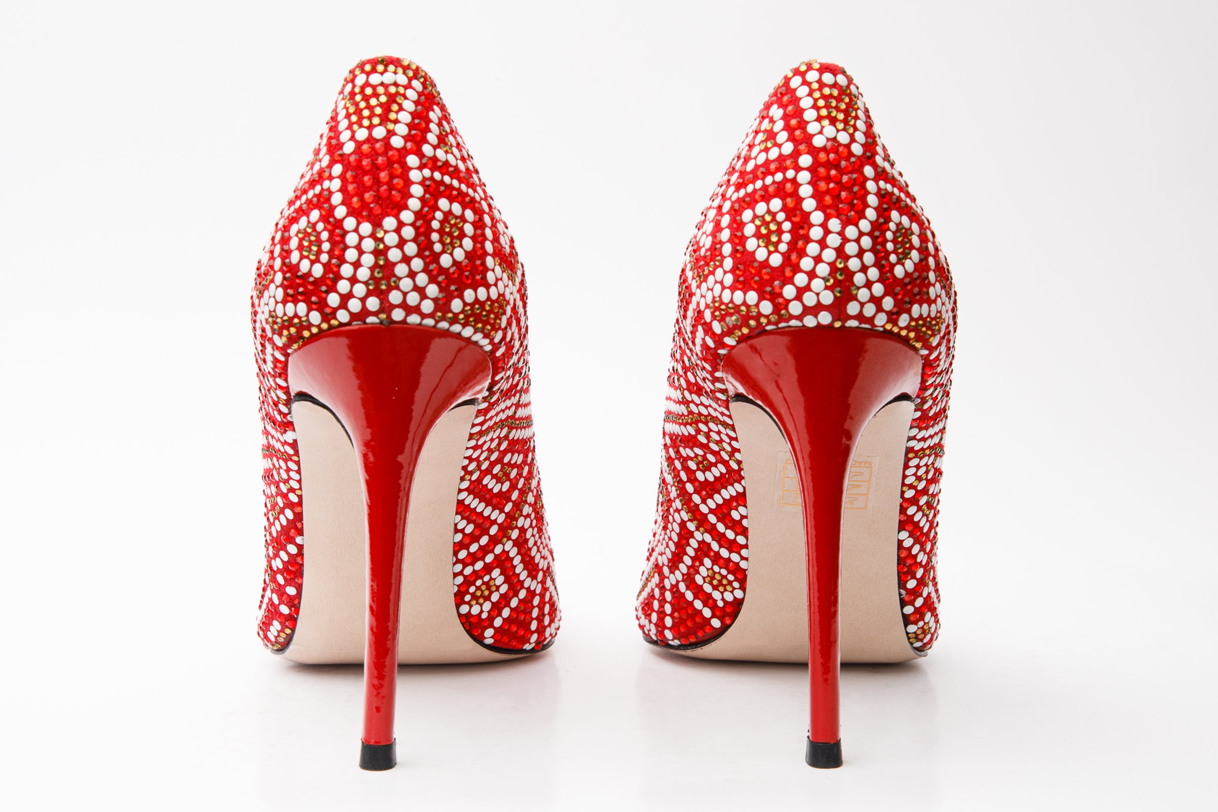 Elevate your style with our stunning crimson-red shoes, meticulously crafted with hand-embroidered stones on supple suede leather. Standing at an elegant these shoes exude a timeless charm that effortlessly merges sophistication and allure.