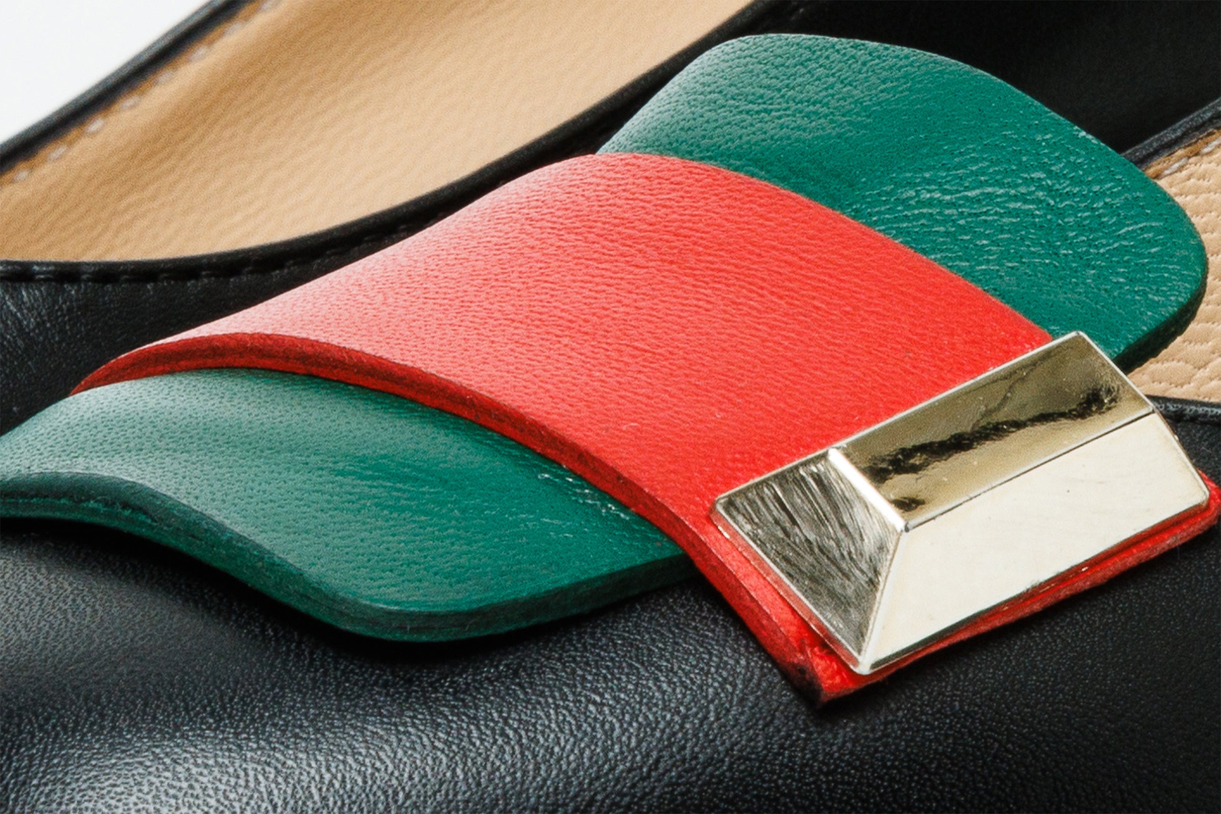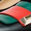 Vibrant Differentiation: Elevate your style with the infusion of green and red-hued leathers, creating a captivating contrast on the shoe’s exterior. The sides adorned with gold jewelry details, especially inlaid on the red leather, add an irresistible allure.