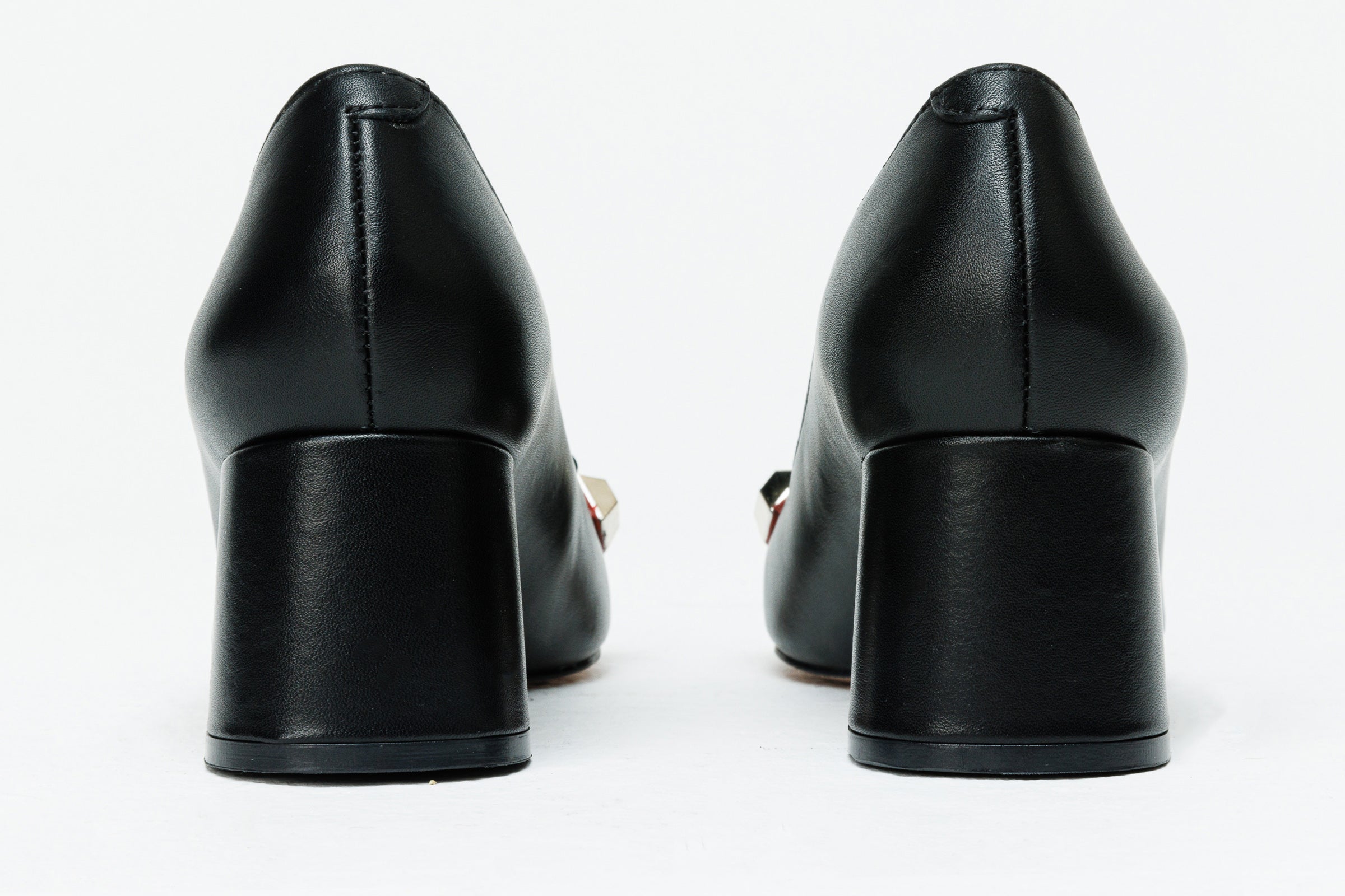 Olney Black Leather Block Heel Pump – A Symphony of Elegance