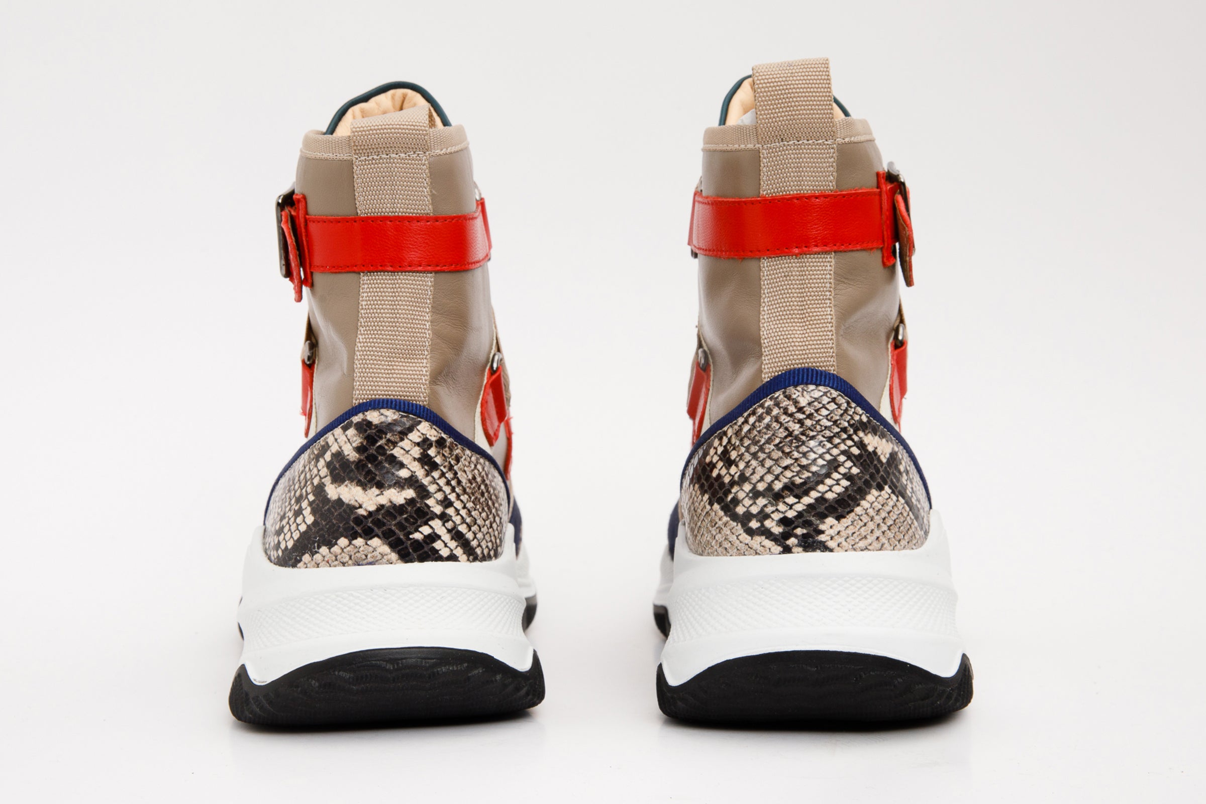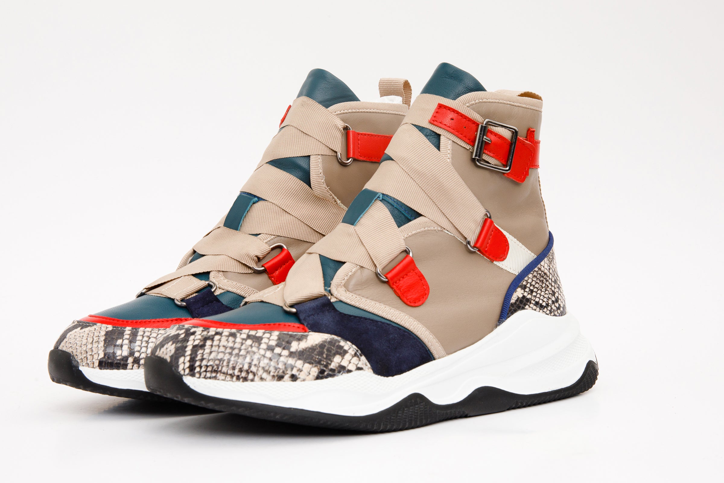 - The fabric laces, adding a touch of allure, are meticulously chosen to complement the vibrant palette. The combination of colorful leather and fabric laces makes a bold and captivating statement.