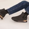 - Elastic side panels allow for easy slip-on wear while maintaining a sleek silhouette.