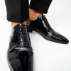 Step into tuxedo elegance with our Paris Black Patent Plain Toe Oxford Shoe, a stunning masterpiece in classic black. Crafted entirely from high-quality leather, these oxford shoes feature a unique design element with matte leather transitions along the lacing area, creating a distinctive and extraordinary look.