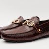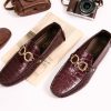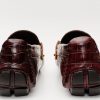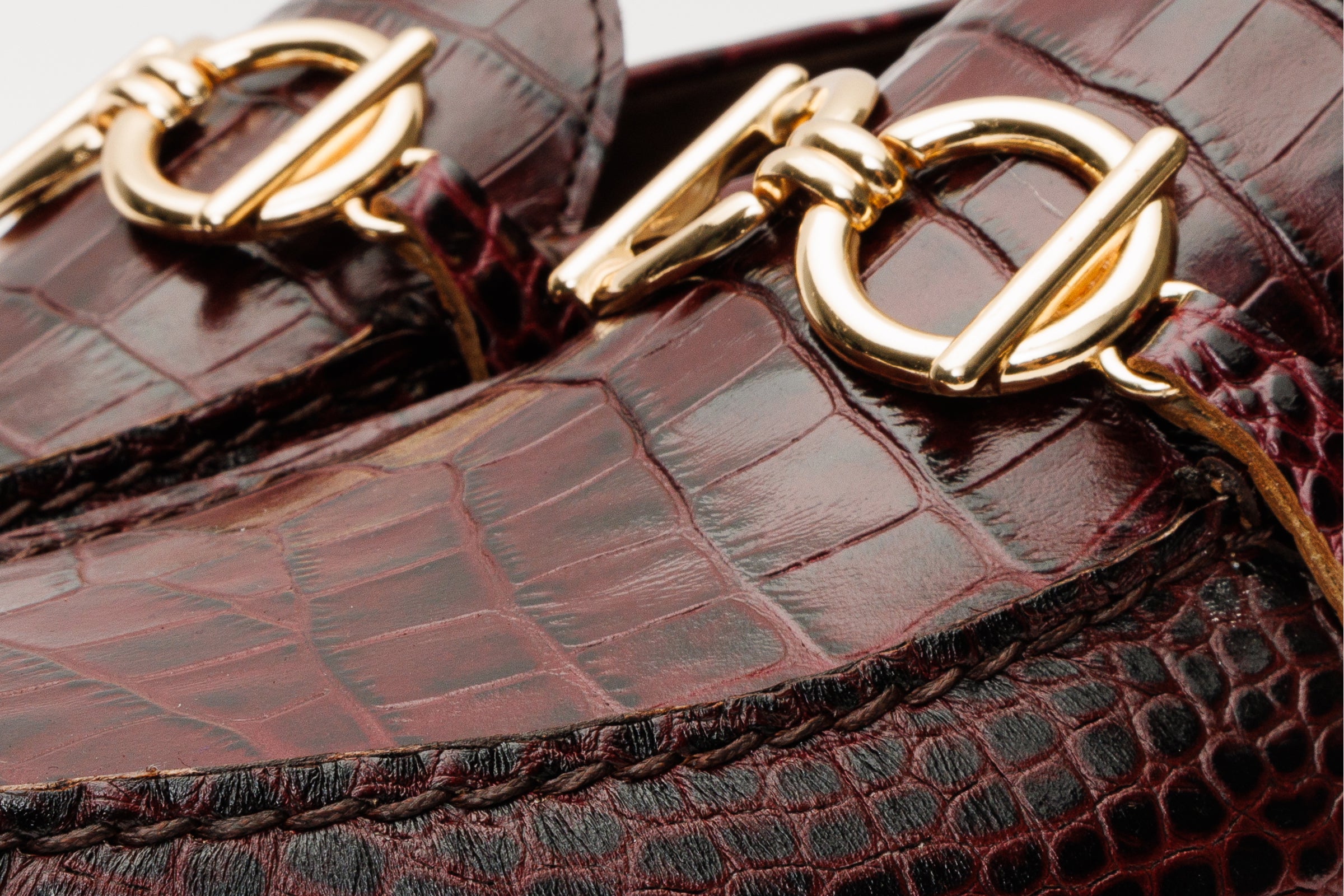 Introducing the Pisa Burgundy Leather Bit Drive Loafer Shoe, a testament to refined style designed exclusively for you. This burgundy drive bit loafer exudes sophistication, featuring a captivating gold buckle for added flair. Meticulously crafted from 100% embossed crocodle calf leather, this shoe promises a unique touch that sets it apart