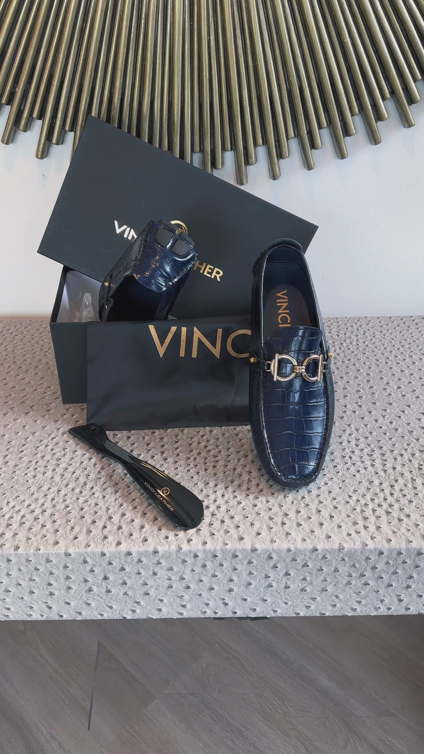 Introducing the Pisa Navy Blue Leather Bit Drive Loafer Shoe, a timeless expression of refined style crafted exclusively for you. This navy blue drive bit loafer radiates sophistication, featuring a captivating gold buckle for an extra touch of charm. Meticulously fashioned from 100% embossed crocodle calf leather, this shoe promises a unique texture and pattern, setting it apart from the ordinary.