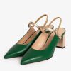 Ethereal Essence: The Linea Green Leather Women Slingback Shoe