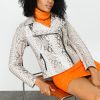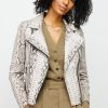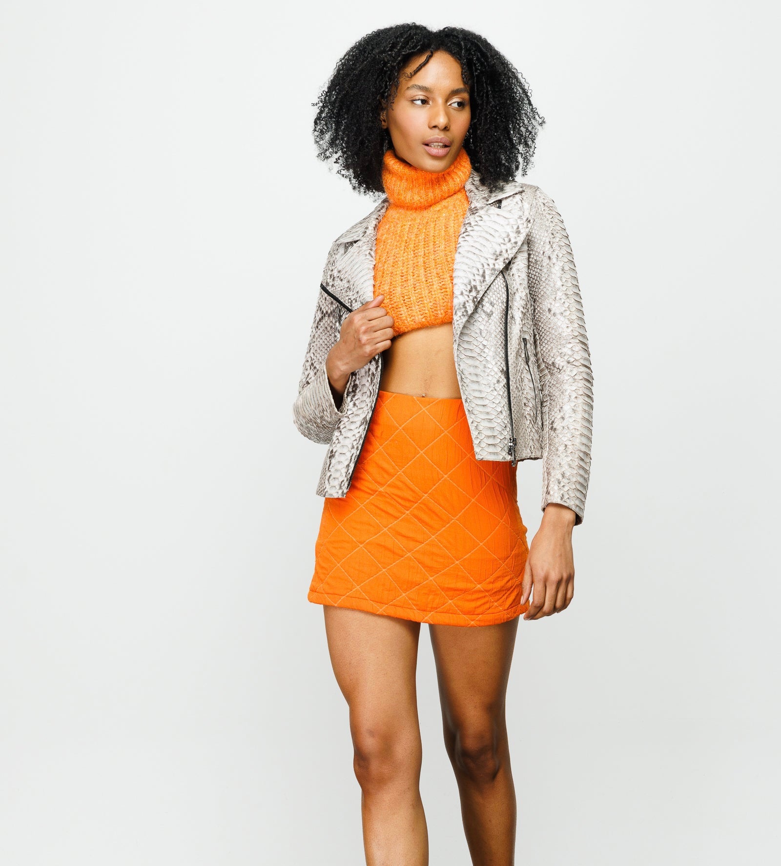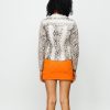 Elegance and simplicity are the key elements made of this fine PYTHN skin biker-jacket coat. Snap buttoning band collar. The iconic metal lion head is applied on the hanging loop at yoke. Zipper fastening. Three pockets: slit- and zip-up ones. Buttoning cuffs. Inner lining.