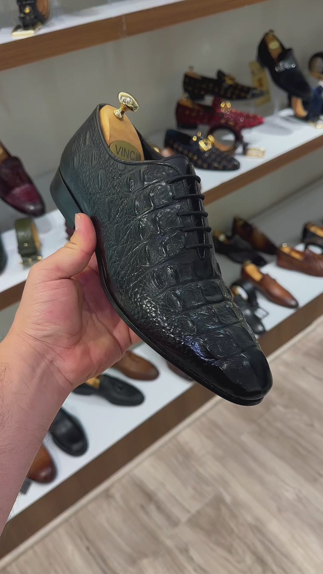 Crafted from the finest black crocodile leather, the Randor shoes showcase luxurious quality and timeless elegance.