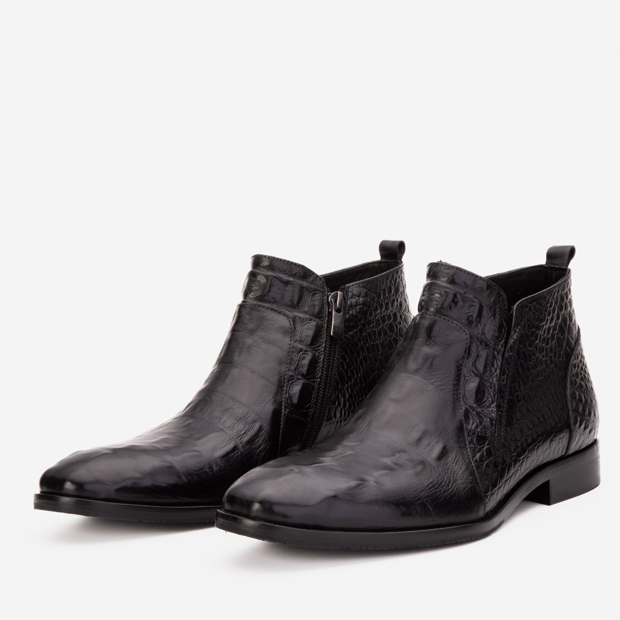 Vinci Leather Shoes The Randor Black Crocodile Leather Side-zip Dress Ankle Men Boot | Men’s Shoes