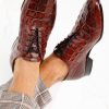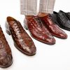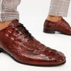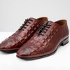 Step into sophistication with the Randor Burgundy Leather Oxford Men Shoes, a pinnacle of craftsmanship and refined style. Meticulously handcrafted from high-quality burgundy crocodile leather, these shoes boast a stunning crocodile embossed pattern that adds captivating allure.