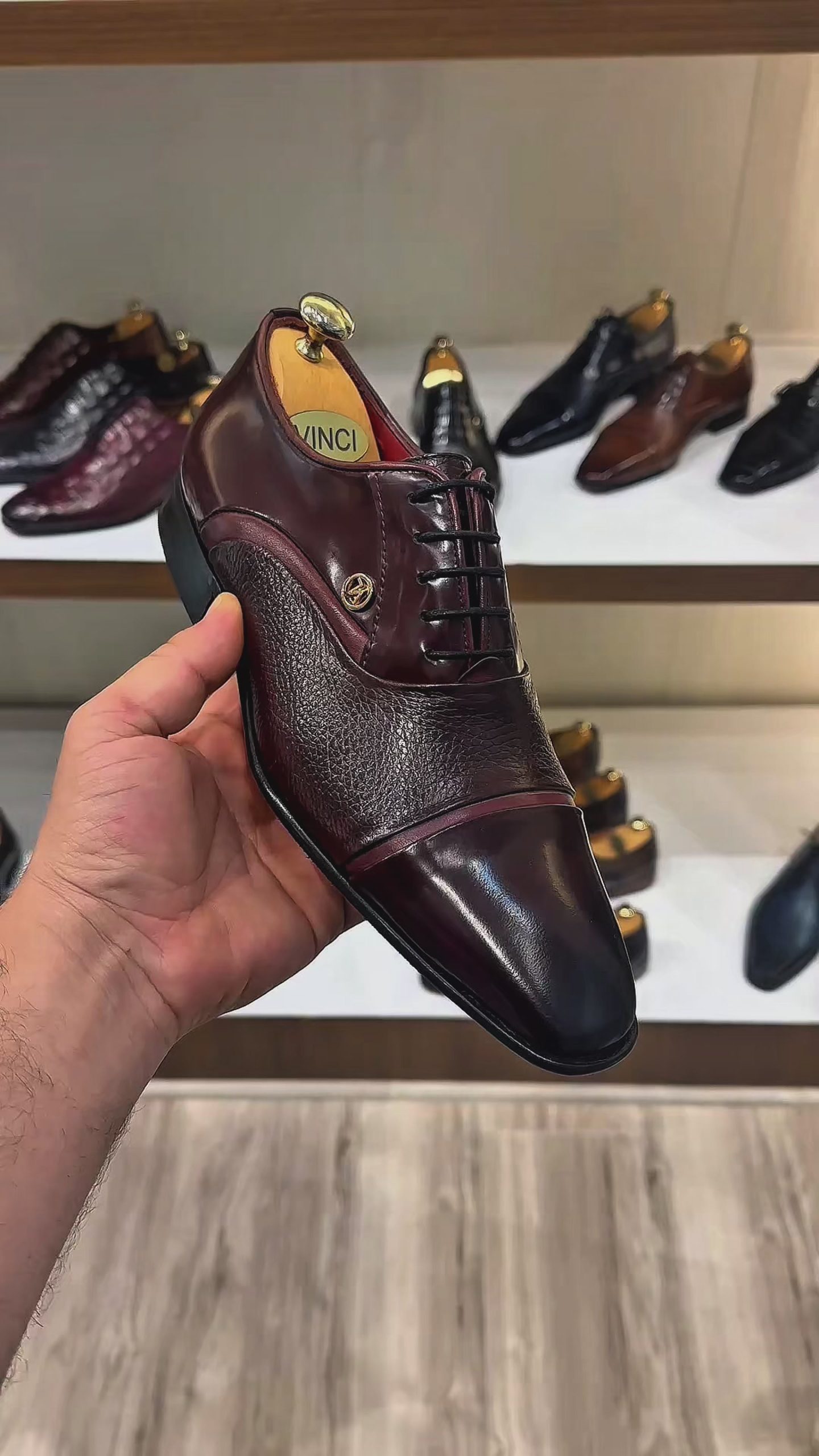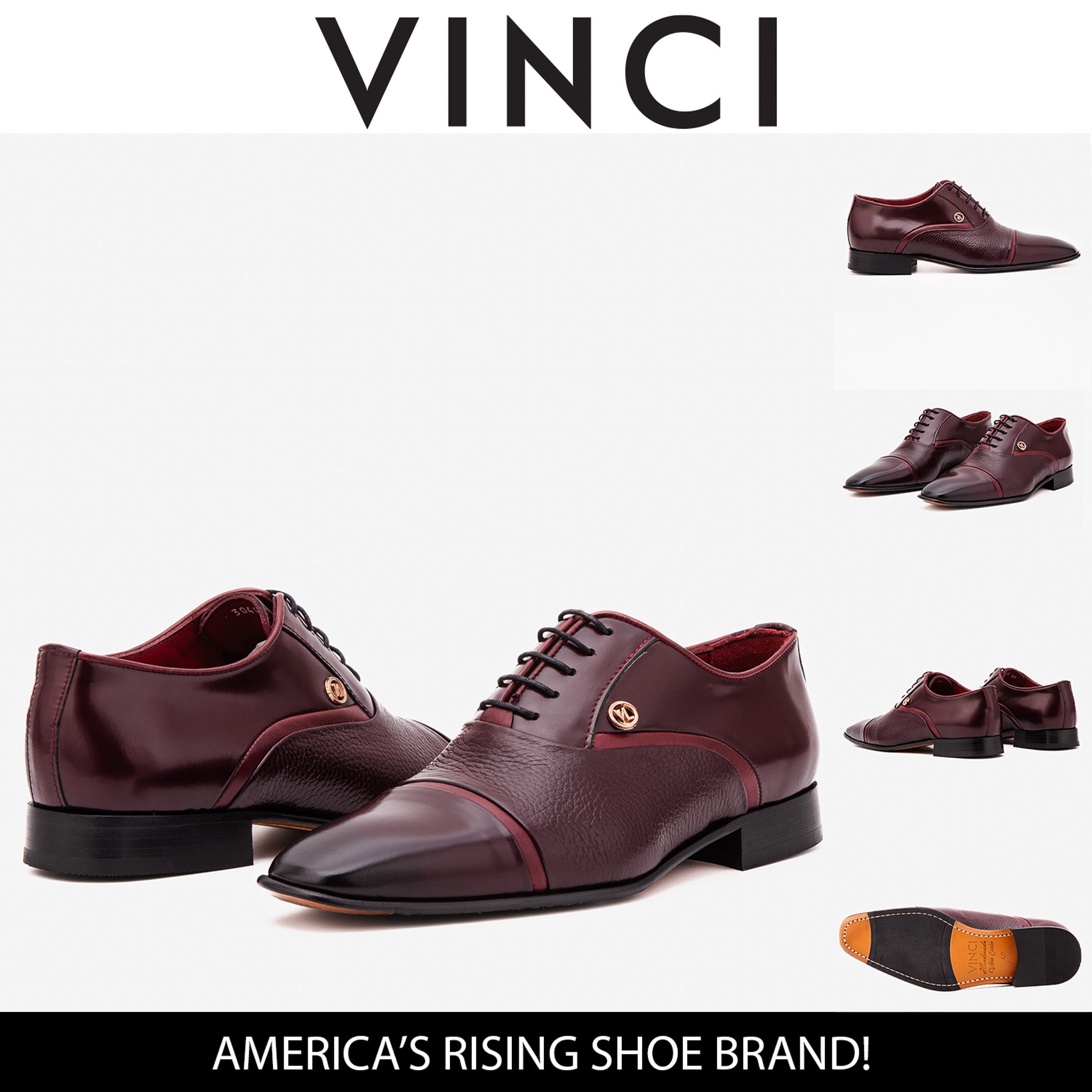Genuine Calf Leather: Dual-finish upper combining polished and textured burgundy leather for depth and distinction.