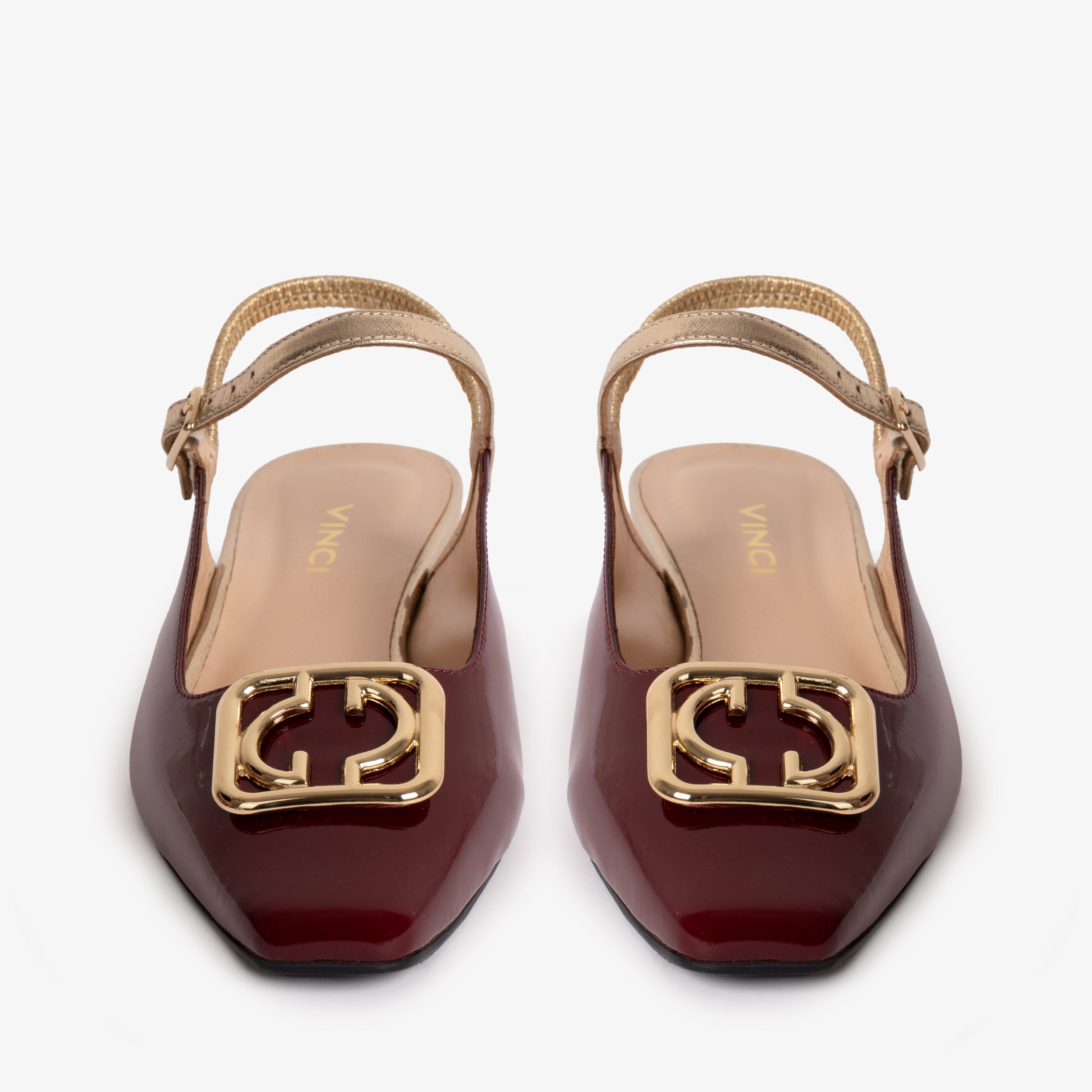 The Rosalinda Burgundy Patent Leather Women Flat Slingback Shoe