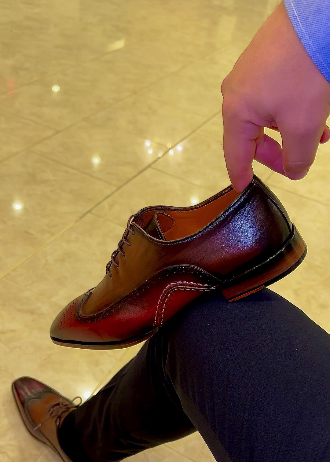 Royal Handcraft Burgundy and Brown Hand-Painted Oxford Shoes – A Fusion of Elegance and Artistry