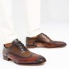 Complete your distinguished look by pairing these hand-painted Oxford shoes with the separately available Burgundy and Brown Leather Belt, featuring a silver buckle. Elevate your style, revel in comfort, and express your unique taste with each step in these exceptional shoes.