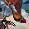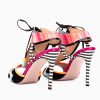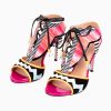 Multicolor Elegance: The T-Strap is crafted from a vibrant multicolor fabric, predominantly in pink, creating a visually appealing and unique pattern.