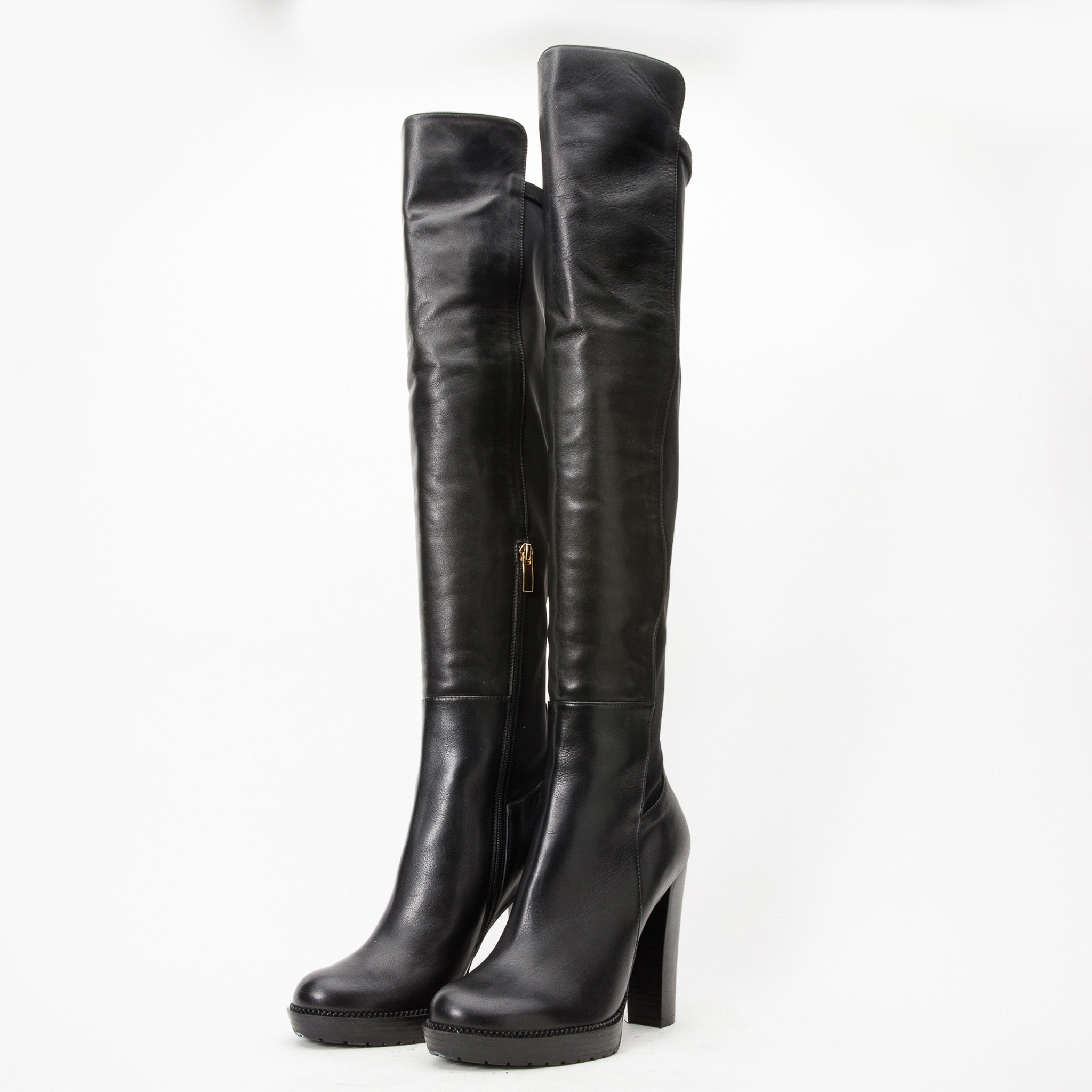 Sao Paulo Black Leather Knee High Platform Heel Women Boot