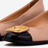 Refined Color Contrast: Beige calf leather upper paired with a sleek black patent leather toe for a polished, feminine look.