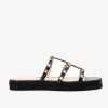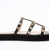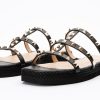 Urban Chic Delight: Seul Black Leather Multi Strap Flat Sandal with Gold Spike Embellishments