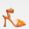 Vinci Leather Shoes The Siena Orange Leather Ankle Strap Plumed Women Sandal Final Sale! | [eu-36 & Us-6] | Women’s Shoes